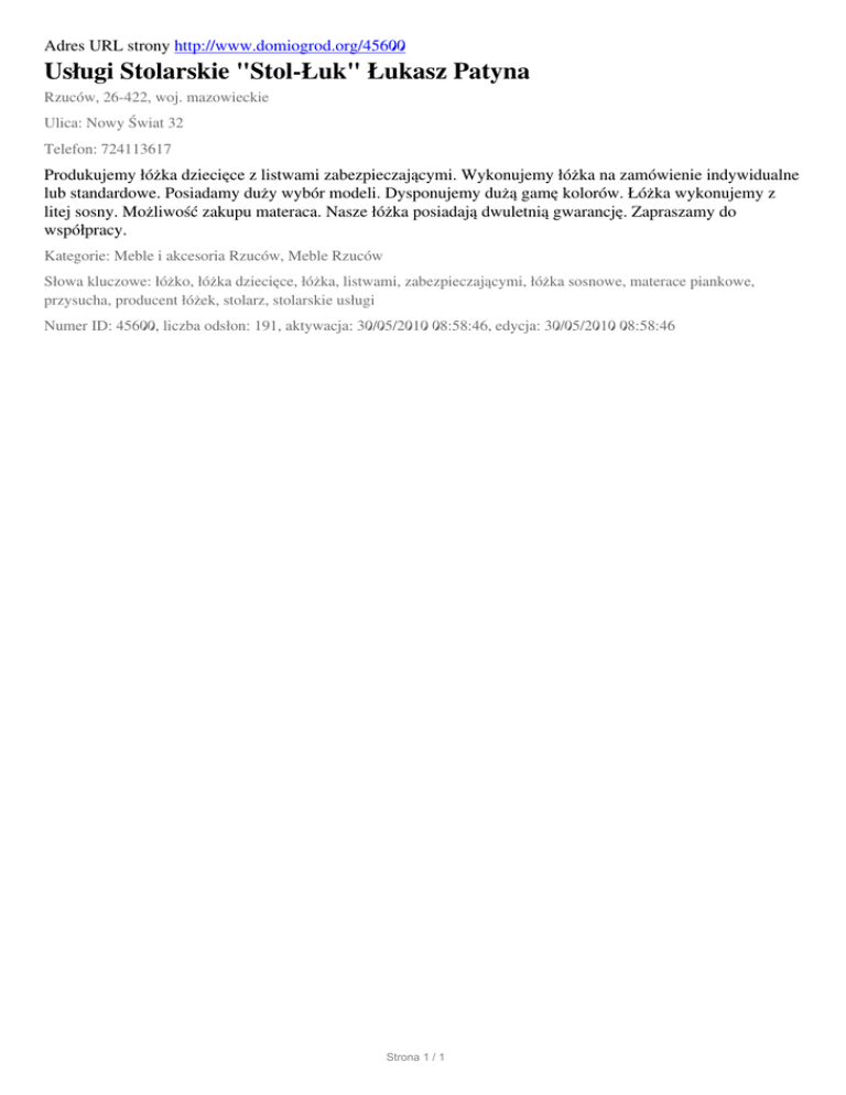 Uslugi Stolarskie "Stol-Luk" Lukasz Patyna, Rzucow, Nowy Swiat 32