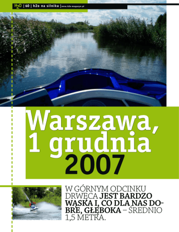 | 60 | h2o na silniku |www.h2o-magazyn.pl Warszawa, 1 grudnia 2007 W górnym odcinku DrwęcA jest bardzo wąska i, co dla nas dobre, głęboka – średnio 1,5 metra. www.h2o-magazyn.pl R | h2o na silniku | 61 | W październikowym numerze H2O przeczytaliście o naszej wyprawie na skuterach wodnych i quadach na trasie Gdańsk – Biała Góra – Malbork – Elbląg – Ostróda. Teraz poprowadzimy was dalej – Drwęcą z Ostródy. Zanim wybraliśmy się na jedną z trudniejszych polskich rzek, długo sprawdzaliśmy, czy na pewno wolno tam płynąć na silnikach. Na dużej części rzeki znajduje się rezerwat ichtiologiczny. Konsultacje z Inspektoratem Żeglugi w Toruniu rozwiały nasze wątpliwości – płyniemy. Towarzyszą nam na lądzie koledzy z ATV Squad na 4 quadach Yamaha. ozpoczynamy o 9 rano w Ostródzie, szybko przemykamy przez szerszą część Jeziora Drwęckiego i za przesmykiem wpływamy w jego 12-kilometrowy wąski fragment. Zaraz potem jesteśmy na Drwęcy i napotykamy w Samborowie jaz. Wiedzieliśmy o nim, a koledzy już czekają z przyczepą na stromym brzegu i przeprawiają nas na jego drugą stronę. Półgodzinne opóźnienie będziemy musieli nadrobić na trasie. W górnym odcinku Drwęca jest bardzo wąska i, co dla nas dobre, głęboka – średnio 1,5 metra. Echosonda Garmina zamontowana na moim skuterze pokazuje też kilka razy ponad 3 metry głębokości. Martwi nas to, że rzeka jest całkowicie zarośnięta, na odcinku 10 km wskakujemy do wody 5–6 razy, aby odetkać wloty do turbin. Musimy tak robić, bo brzeg rzeki jest stromy i uniemożliwia przechylenie skutera na bok. Ponieważ zielsko łapiemy tylko płynąc wolno (w ślizgu moc naszych turbin wystarcza, aby zielsko przemielić), musimy robić to szybko. Całkowitym zaskoczeniem jest ilość zwalonych drzew tarasujących rzekę. Po napotkaniu kilkunastu cieszymy się, że trasa jest urozmaicona, po kilkudziesięciu czujemy się już nieco zmęczeni ciągłą walką z konarami w wodzie... Po setnym drzewie szczerze żałujemy, że nie mamy pił spalinowych albo chociaż toporków. Opracowujemy wiele technik i sposobów przedzierania się przez drzewa tarasujące drogę. Cześć pokonujemy, płynąc slalomem między konarami, w innej części trzeba zejść ze skutera i przepchnąć go. W jeszcze innym przypadku rozpędzamy się, zadzieramy dziób przed leżącym | 62 | h2o na silniku |www.h2o-magazyn.pl Całkowitym zaskoczeniem jest ilość zwalonych drzew tarasujących rzekę drzewem (należy gwałtownie zwolnić i przyspieszyć przed przeszkodą, równocześnie przenosząc ciężar ciała do tyłu) i przepływamy lub przepychamy się nad nim. Największym problemem są drzewa całkowicie zagradzające nurt rzeki, na których osadziło się dużo małych gałęzi i śmieci w taki sposób, że tworzą na powierzchni tamę. W takiej sytuacji nie mamy innego wyjścia, uderzamy rozpędzonym skuterem kilka razy i robimy wyrwę umożliwiającą przepłynięcie. Ilość zakrętów na rzece przyprawia nas o zawrót głowy. Do tej pory wydawało nam się, że Pisa jest krętą rzeką… Drwęca bije ją o głowę. Ponadto rzeka jest prawie 2,5 razy dłuższa od Pisy. Mijamy kolejne miejscowości, Nowe Miasto Lubawskie, Brodnicę, Golub-Dobrzyń z górującym nad rzeką zamkiem znanym wszystkich z turniejów rycerskich. Za Nowym Miastem Lubawskim spotykamy kolegów z ATV Squad. Śmieją się z nas, że los się odwrócił, na każdej wcześniejszej wyprawie to my czekamy na nich – tym razem to oni czekają na nas. W Golubiu przepływamy pod mostem, pod którym z trudnością się mieścimy. Mój pomysł, by następnym razem pokonać rzekę RIB-em, spala na panewce, jest tak nisko, że nie byłoby szansy. Za Golubiem-Dobrzyniem rzeka robi się coraz szersza, niestety ilość zielska dalej jest ogromna. Jedynym wyjściem, aby przepłynąć bez zatkania turbin, to wyłączyć natychmiast silnik i jeszcze w ślizgu pokonać „łąkę”. Cóż, czasami się udaje, czasami nas zatyka… Skuter w ślizgu z wyłączonym silnikiem, pozbawiony możliwości sterowania (brak napędu jest równoznaczny z brakiem sterowania), zachowuje się śmiesznie. Zaczyna zapadać zmierzch, ale kilka minut po zachodzie docieramy do celu – Osada Karbówko tuż przed ujściem Drwęcy do Wisły. Totalnie zmęczeni, ale szczęśliwi, że już jesteśmy u celu, marzymy o ciepłym posiłku i czymś rozgrzewającym. Po godzinie do Osady docierają koledzy z ATV Squad, na drugim odcinku rzeki znów byliśmy szybsi. www.h2o-magazyn.pl | h2o na silniku | 63 | Martwi nas to, że rzeka jest całkowicie zarośnięta, na odcinku 10 km wskakujemy do wody 5–6 razy, aby odetkać wloty do turbin foto: www.w ater-jet.com.pl Krótkie podsumowanie. Super. Fantastyczna rzeka, wymagająca, ale również bardzo piękna. 230 kilometrów, które przepłynęliśmy tego dnia, to naprawdę sporo. Myślę, że zaprosimy tu niektórych naszych klientów, ale tylko tych, którzy mają już doświadczenie w prowadzeniu skutera wodnego. Z klientami będziemy pokonywać Drwęcę w „górę”, a nie w „dół”, ponieważ nagłe wyjechanie zza zakrętu na leżące drzewo przy dopychającym nurtem nie zawsze może być bezpieczne. Lepiej będzie „pod prąd”. Szkoda, że od lat 60. nie były tu prowadzone żadne prace hydrotechniczne, rzeka pod względem głębokości pozwala na żeglugę również łodziami motorowymi. Gdyby nie jaz w Samborowie, byłaby to fantastyczna, kolejna droga żeglugowa na Mazury. ❚❚❚❚❚ Wojciech Kochowicz | Water Jet | www.water-jet.com.pl Ilość zakrętów na rzece przyprawia nas o zawrót głowy. Do tej pory wydawało nam się, że Pisa jest krętą rzeką…