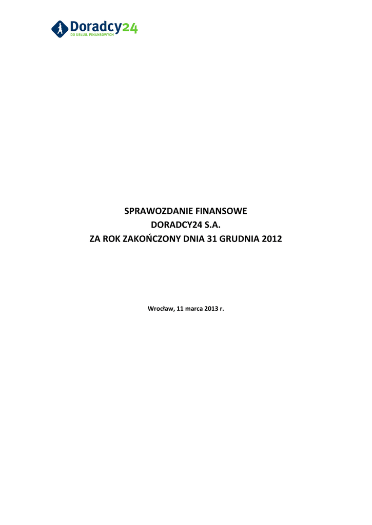 SPRAWOZDANIE FINANSOWE DORADCY24 S.A. ZA ROK