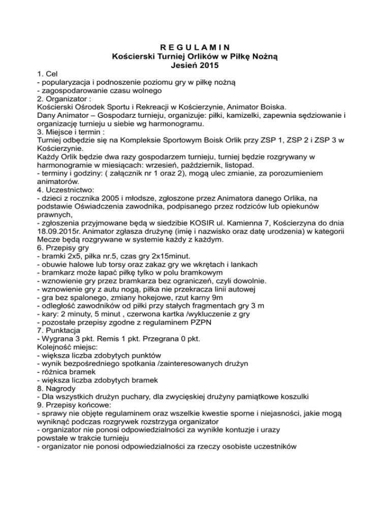 REGULAMIN Kościerski Turniej Orlików w Piłkę Nożną Jesień 2015