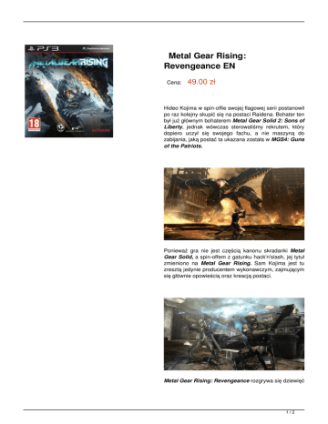 Metal Gear Rising: Revengeance EN Cena: 49.00 zł Hideo Kojima w spin-offie swojej flagowej serii postanowił po raz kolejny skupić się na postaci Raidena. Bohater ten był już głównym bohaterem Metal Gear Solid 2: Sons of Liberty, jednak wówczas sterowaliśmy rekrutem, który dopiero uczył się swojego fachu, a nie maszyną do zabijania, jaką postać ta ukazana została w MGS4: Guns of the Patriots. Ponieważ gra nie jest częścią kanonu skradanki Metal Gear Solid, a spin-offem z gatunku hack'n'slash, jej tytuł zmieniono na Metal Gear Rising. Sam Kojima jest tu zresztą jedynie producentem wykonawczym, zajmującym się głównie opowieścią oraz kreacją postaci. Metal Gear Rising: Revengeance rozgrywa się dziewięć 1/2 lat po zakończeniu Guns of the Patriots i przedstawia historię Raidena walczącego z cyborgami i robotami Desperado Enforcement LLC w bliżej nieokreślonym państwie afrykańskim, wyniszczonym niedawno zakończoną wojna domową. Gra odchodzi jednak od schematów właściwych głównemu trzonowi serii i oferuje przede wszystkim szybką i dynamiczną akcję, typową dla produkcji studia Platinum Games. Zobacz wideo: 2/2 Powered by TCPDF (www.tcpdf.org)