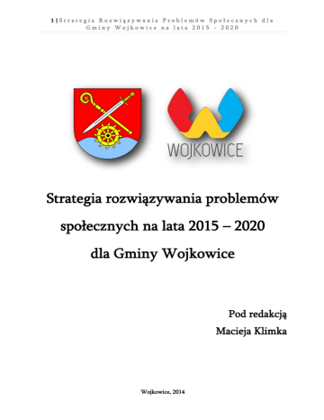 1|Strategia Rozwiązywania Problemów Społecznych dla Gminy Wojkowice na lata 2015 - 2020 Strategia rozwiązywania problemów społecznych na lata 2015 – 2020 dla Gminy Wojkowice Pod redakcją Macieja Klimka Wojkowice, 2014 2|Strategia Rozwiązywania Problemów Społecznych dla Gminy Wojkowice na lata 2015 - 2020 Spis treści 1. Wstęp 2. Podstawy prawne 3. Strategia Rozwiązywania Problemów Społecznych na lata 2015 – 2020 dla Gminy Wojkowice – wprowadzenie 4. Redaktor merytoryczny strategii 5. Metodyka opracowania strategii 6. Strategia jako metoda rozwiązywania problemów społecznych 7. Podstawowa struktura strategii oraz uwarunkowania jej realizacji na poziomie samorządu gminnego 8. Strategie samorządu gminnego i ich specyfika 9. Czym jest strategia? 10. Diagnoza stanu obecnego 11. Charakterystyka głównych problemów społecznych gminy Wojkowice – studium socjologiczne(Maciej Klimek, Zofia Trzeszkowska) 12. Jakościowa analiza SWOT Polityki Społecznej w Wojkowicach 13. Cele strategiczne i kierunki działań 14. Monitoring wdrażania strategii Wojkowice, 2014 3|Strategia Rozwiązywania Problemów Społecznych dla Gminy Wojkowice na lata 2015 - 2020 W stęp Obecnie stale wzrasta zakres zadań stawianych przed instytucjami pomocy społecznej, co spowodowane jest zwiększającym się ich ciężarem gatunkowym i stopniem trudności generowanym takimi czynnikami, jak redukcja zatrudnienia, deficyt nowych miejsc pracy, wzrost kosztów związanych z ochroną zdrowia i rehabilitacją osób niepełnosprawnych. W celu ich realizacji powstały, bądź zostały znowelizowane akty prawne, a wśród nich art. 17 ust. 1 pkt 1 ustawy z dnia 12 marca 2004 r. o pomocy społecznej (Dz. U. z 2008 r., Nr 115, poz. 728) zobowiązujący samorząd gminy do opracowania i realizacji Gminnej Strategii Rozwiązywania Problemów Społecznych. W myśl nowej strategii zinstytucjonalizowana pomoc społeczna oferuje pomoc finansową i materialną jako instrument początkujący proces, umożliwiający osobom i rodzinom przezwyciężanie ich trudnych sytuacji życiowych, których nie są one w stanie pokonać we własnym zakresie. Działania te opierają się na zasadach programowania, subsydiarności, koncentracji, elastyczności i otwartości. Istotą nowego modelu działania pomocy społecznej, kreującej politykę społeczną – a w jej obszarze strategię rozwiązywania problemów społecznych – jest jej uspołecznienie zarówno w procesie planowania, jak też realizacji. Dobrem nadrzędnym strategii rozwiązywania problemów społecznych jest człowiek -jego potrzeby zarówno w kontekście indywidualnym, jak i społecznym. Strategia jest dokumentem opisującym, analizującym i wartościującym zjawiska w tym obszarze rzeczywistości, od którego zależy stworzenie wizji godnego życia zarówno jednostki, jak też grupy społecznej jako całości; w praktyce stanowi skuteczny instrument realizacji przyjętych założeń dla osiągnięcia stanu określonego w wizji. Państwo Członkowskie Unii Europejskiej ma obowiązek prowadzenia w ramach Unii wspólnych działań wspierających, uzupełniających i koordynujących w szeroko pojętej dziedzinie ochrony ludności i rozwoju kapitału ludzkiego. Opracowanie strategii jest warunkiem pozyskiwania zewnętrznych środków finansowych na realizację projektów dotyczących sfery społecznej zarówno z budżetu państwa, jak też funduszy Unii Europejskiej Wojkowice, 2014 4|Strategia Rozwiązywania Problemów Społecznych dla Gminy Wojkowice na lata 2015 - 2020 Podstawy prawne Strategia Rozwiązywania Problemów Społecznych Gminy Wojkowice tworzona jest z mocy ustawy z dnia 12 marca 2004 r. o pomocy społecznej (Dz. U. z 2004 r., Nr 64, poz. 593 i Nr 99, poz. 1001), która w art. 17 ust. 1 pkt 1 nakłada na gminy obowiązek „opracowania i realizacji gminnej strategii rozwiązywania problemów społecznych ze szczególnym uwzględnieniem programów pomocy społecznej, profilaktyki i rozwiązywania problemów alkoholowych i innych, których celem jest integracja osób i rodzin z grup szczególnego ryzyka”. Ustawodawca określa zakres konstruowanej strategii, w której priorytetowe działania wiążą się ściśle z opracowaniem programów pomocy społecznej. Gminna Strategia Rozwiązywania Problemów Społecznych Gminy Wojkowice jest zgodna z założeniami polityki państwa, a także ustaw kompetencyjnych nakładających na administrację rządową i samorządową określone obowiązki. Działania zawarte w Strategii oparte są na postanowieniach innych krajowych aktów prawnych, a w szczególności: ustawy z dnia 24 kwietnia 2003 roku o działalności pożytku publicznego i o wolontariacie (tekst jednolity: Dz. U. z 2014 r. 1356 j.t.); ustawy z dnia 13 czerwca 2003 roku o zatrudnieniu socjalnym (tekst jednolity: Dz. U. z 2011 r., Nr 43, poz. 225 z późn. zm.); ustawy z dnia 26 października 1982 roku o wychowaniu w trzeźwości, przeciwdziałaniu alkoholizmowi (tekst jednolity: Dz. U. z 2012 r. 1356 j.t z późn. zm.); ustawy dnia z 29 lipca 2005 roku o przeciwdziałaniu narkomanii (tekst jednolity: Dz. U. z 2012 r., poz. 124); ustawy z dnia 20 kwietnia 2004 roku o promocji zatrudnienia i instytucjach rynku pracy (tekst jednolity: Dz. U. z 2013 r. 674 j.t z późn. zm.); ustawy z dnia 27 sierpnia 1997 roku o rehabilitacji zawodowej i społecznej oraz zatrudnianiu osób niepełnosprawnych (tekst jednolity: Dz. U. z 2011 r., Nr 127, poz. 7212 z późn. zm.); ustawy z dnia 28 listopada 2003 roku o świadczeniach rodzinnych (tekst jednolity: Dz. U. z 2013 r. poz. 1456 z późn. zm.). ustawy z dnia 7 września 2007 roku o pomocy osobom uprawnionym do alimentów( tekst jednolity: Dz.U. z 2012 r., poz 1228) ustawy z dnia 21 czerwca 2001 r. o dodatkach mieszkaniowych(tekst jednolity: Dz.U. z 2013 r. poz 966, 984) ustawy z dnia 10 kwietnia 1997 r. Prawo energetyczne(tekst jednolity Dz.U. z 2012. poz 1059 z późn. zm.). Wojkowice, 2014 5|Strategia Rozwią