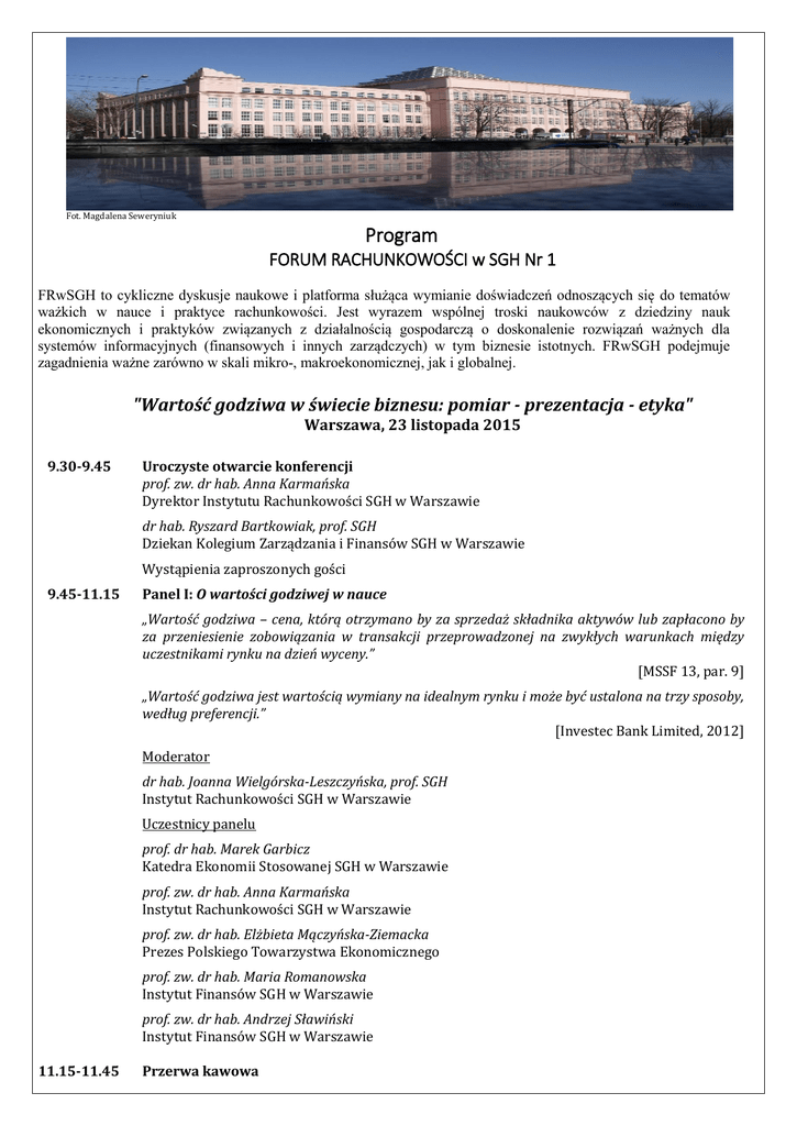 Program - Forum rachunkowości w SGH