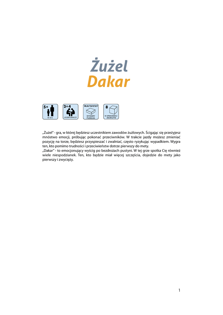 „Żużel” - gra, w której będziesz uczestnikiem zawodów żużlowych. Ścigając się przeżyjesz mnóstwo emocji, próbując pokonać przeciwników. W trakcie jazdy możesz zmieniać pozycję na torze, będziesz przyspieszać i zwalniać, często ryzykując wypadkiem. Wygra ten, kto pomimo trudności i przeciwieństw dotrze pierwszy do mety. „Dakar” - to emocjonujący wyścig po bezdrożach pustyni. W tej grze spotka Cię również wiele niespodzianek. Ten, kto będzie miał więcej szczęścia, dojedzie do mety jako pierwszy i zwycięży. 1