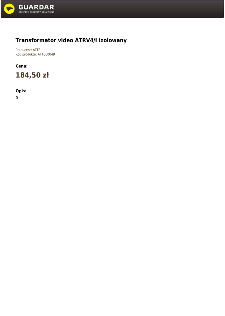 Transformator video ATRV4/I izolowany Producent: ATTE Kod produktu: ATT000049 Cena: 184,50 zł Opis: 0
