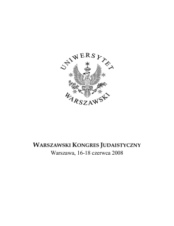 WARSZAWSKI KONGRES JUDAISTYCZNY Warszawa, 16-18 czerwca 2008 16 VI 2008 (poniedziałek) Godzina: 10.00-12.00 Rozpoczęcie Kongresu Godzina: 12.00-14.00 Asymilacyjne projekty modernizacyjne – w poszukiwaniu nowej tożsamości, Obrady prowadzi: prof. dr hab. Anna LandauCzajka 1. Aleksandra Bilewicz, MISH UW Sefardyjczyk jako model Żyda nowoczesnego: O inspiracjach sefardyjskich w polsko-żydowskiej literaturze emancypacyjno-asymilacyjnej 2. dr hab. Eugenia Prokop-Janiec, UJ Ewolucja asymilatorskiego projektu modernizacyjnego: środowisko „Izraelity” w dwudziestoleciu międzywojennym 3. dr Marta Sikorska-Kowalska, UŁ Asymilacja, patriotyzm, socjalizm. Heilpernowie, Konowie, Heryngowie – Żydzi – socjaliści – dylematy tożsamości 4. dr Mikhail Kizilov, Merton College Modernizacja a dehebraizacja karaimskiej gminy w Polsce 1918-1939 Zagłada. Zapisy literackie i metafizyka, Obrady prowadzi: dr Jacek Leociak 1. mgr Ewa Wiatr, UŁ „Kronika Getta Łódzkiego”zwierciadłem życia codziennego 2. mgr Marta Janczewska, CBnZ Zapis codzienności w literaturze dokumentu osobistego czasu Zagłady – lektury i sny (na podstawie tekstów pisanych tam i wtedy) 3. mgr Małgorzata Zduniak-Wiktorowicz, UAM Sztetl opowiada – Zagłada zaświadczona 4. Konrad Wójcik, IKP Kołobrzeg Bluźnierstwo wobec braku Boga. Lektura Calela Perechodnika w kontekście świadectw Zagłady Dzieciństwo po wojnie. Żydowskie szkoły i sierocińce, Obrady prowadzi: dr Helena Datner 1. prof. dr hab. Joanna B. Michlic, Lehigh University Dzieciństwo w sierocińcach żydowskich w Polsce po II wojnie światowej w świetle zachowanych źródeł 2. Noemi Bażanowska UJ Rola powojennych żydowskich domów dziecka w kształtowaniu postaw społecznych i świadomości narodowej wychowanków 3. dr Ewa Pogorzała PWSZ Przysucha Szkolnictwo dla dzieci żydowskich w Polsce po II wojnie światowej 4. mgr Anna Wilk UJ Szkoła żydowska w Chorzowie w latach 1945 – 1948 Filozofia. Starożytność i Średniowiecze, Obrady prowadzi: prof. dr hab. Stanisław Krajewski 1. Prof. dr hab. Edward Lipiński Leuven Od ideologii królewskiej do mesjanizmu w Psalmach Salomona 2. dr Anna Kuśmirek UKSW Mesjanizm w tradycji targumicznej 3. dr Marzena Zawanowska UMCS A-mistyczny mesjanizm wczesnych Karaimów: racjonalistyczne podejście do egzegezy biblijnej 4. dr Piotr Paziński Utopia bez apokalipsy – mesjańskie poglądy Majmonidesa 2 Jidyszland, Obrady prowadzi: dr Mirosława Bułat 1. Prof. dr hab. Ewa Geller UW Jidyszland: żydowska Atlantyda. Próba definicji 2. dr Natan Cohen University Bar Ilan Mity jidyszlandu: odkrywanie legendy o Esterce w literaturze żydowskiej 3. dr Alexander Kurc Fundacja im. Michela de Montaigne Białystok Wielokulturowa tożsamość Żydów polskich - na podstawie badań w projekcie „Pojednanie – Żydzi i Polacy” Antysemityzm i jego formy, Obrady prowadzi: prof. dr hab. Ireneusz Krzemiński 1. dr Piotr Weryński PŚ Katowice 2. Prof. dr hab. Olga Goldberg-Mulkiewicz HU Jerozolima 3. dr Przemysław Różański UG Resentyment polski wobec Holocaustu jako faktu społecznego Czynniki stymulujące zmiany stereotypu "obcego". Figurka postaci Żyda na polskim rynku Antysemityzm – stereotyp czy coś więcej ? Godzina: 14.00-15.30 Przerwa obiadowa Godzina: 15.30-17.00 Syjonizm do 1939 r., Obrady prowadzi: prof. dr hab. Szymon Rudnicki 1. dr hab. Leszek Hońdo UJ Początki syjonizmu w Galicji 2. dr Krzysztof Ulanowski UG Chaluce. Od obietnicy ziemi do Ziemi Obiecanej 3. mgr Maciej Wójcicki UW Związek Młodzieży Żydowskiej im. Trumpeldora - Bejtar w Polsce, jako czynnik modernizacji społeczności żydowskiej Zagłada. Zapisy literackie- dzieci i młodzież, Obrady prowadzi: dr Dorota Krawczyńska 1. dr Justyna Kowalska IKP Warszawa Życie codzienne pod okupacją niemiecką w dziennikach dzieci żydowskich 2. mgr Katarzyna Sokołowska UwB Zapisane wierszem. Młodzi Żydzi w poszukiwaniu formy ekspresji codzienności Zagłady 3. mgr Julia Makosz UJ Pieśni getta Postawy i opcje tożsamościowe polskich Żydów po II wojnie światowej, Obrady prowadzi: prof. dr hab. Małgorzata Melchior 1. mgr Adrian Wójcik, dr Michał Bilewicz UW Co wynika z tożsamości Polskich Żydów przełomu tysiącleci? Analiza badań ilościowych 2. mgr Joanna Wiszniewicz ŻIH Jedno czy dwa „drugie pokolenia” w Polsce? Wstępne rozpoznanie problematyki 3. mgr Kamila Klauzińska UJ Współczesna genealogia Żydów polskich w oczach antropologa. Studium jednego przypadku 3 Filozofia. Myśl współczesna cz. I, Obrady prowadzi: dr hab. Jan Doktór 1. mgr Wojciech Hanuszkiwicz SNS IFiS PAN Nauka i mesjanizm. Filozofia kultury Hermanna Cohena 2. dr Adam Lipszyc IFiS PAN Ernst Bloch: ślady zbyt wyraźne 3. mgr Urszula Idziak SNS IFiS PAN Obietnica, czyli Jacquesa Derridy mesjanizm bez mesjanizmu Literatura cz. I, Obrady prowadzi: dr Marta Marzańska 1. dr Małgorzata Domagalska UŁ Warszawa przyszłości, ale dla kogo? Futurystyczne wizje stolicy w antysemickiej prozie przełomu XIX i XX wieku 2. mgr Zuzanna Kołodziejska UW Przestrzeń Warszawy widziana oczami jej żydowskich mieszkańców 3. Katarzyna Mazurczak UW Żydowskie domy literackie w Warszawie: Rodziny Cejtlin i Alterman w okresie rozkwitu publicystyki hebrajskiej i jidysz Jidyszland. Kultura, Obrady prowadzi: dr Natan Cohen 1. dr Joanna Nalewajko-Kulikov IH PAN Nauka ojczystego języka 2. mgr Aleksandra Geller UW Wos iz jidiszizm? – koncepcje kultury jidysz na podstawie publicystyki w „Literarisze Bleter” 3. mgr Karolina Szymaniak UJ Wytyczanie granic – krytyka literacka wobec zagadnień tożsamości literatury jidysz Antysemicka tradycja. Mowa narodowo-katolicka, Obrady prowadzi: prof. dr hab. Ireneusz Krzemiński 1. dr Grzegorz Krzywiec IH PAN Dziedzictwo II Rzeczpospolitej? - antysemityzm jako kod kulturowy, projekt narodowy i Weltanschauung 2. dr Agnieszka Friedrich UG Ideologia i frazeologia antysemicka na łamach „Roli” Jana Jeleńskiego. 3. mgr 