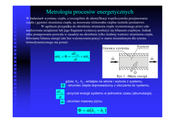 Metrologia procesów energetycznych W badaniach wymiany ciepła, a szczególnie do identyfikacji współczynnika przejmowania ciepła i gęstości strumienia ciepła, są stosowane róŜnorodne cieplne techniki pomiarowe. W ogólnym przypadku do określenia strumienia ciepła wymienionego przez całe analizowane urządzenie lub jego fragment wystarczy posłuŜyć się bilansem cieplnym. Jednak takie postępowanie pozwala w zasadzie na określenie tylko średniej wartości strumienia ciepła. Równanie bilansu energii (ale bez wykonywania pracy) w stanie nieustalonym dla sytemu termodynamicznego ma postać: System Granica systemu m& h1 + Φ = dE sys dt + m& h2 m m Q Rys.1. Bilans energii. gdzie: h1, h2 −entalpie na wlocie i wylocie z systemu, Φ −strumień ciepła doprowadzony z otoczenia do systemu, dEsys −przyrost energii systemu w jednostce czasu (akumulacja), dt m& −strumień masowy płynu. Φ = m& (h2 − h1 ) Wśród licznej gamy technik cieplnych moŜna wyodrębnić dwie zasadnicze kategorie. Pierwsza z nich to techniki niestacjonarne, w których pomiar jest realizowany w warunkach niestacjonarnych (zmienne w czasie pole temperatury czujnika), druga kategoria, to gdy pomiar odbywa się w warunkach stacjonarnych. Stacjonarne techniki pomiarowe Metody Przewodnościowe Metody bilansu cieplnego Radiometry Czujniki typu ścianka pomocnicza Czujniki grzane (Aktywne) Czujniki typu ścianka pomocnicza Czujniki tarczowe Gardona Czujniki entalpowe Czujniki tarczowe Gardona Czujniki róŜnicowe Czujniki prętowe Niestacjonarne techniki pomiarowe Metoda stanu uporządkowanego Czujniki kalorymetryczne Metody rozwiązań odwrotnych Czujniki cienkowarstwowe Czujniki grubowarstwowe Rys. 2. Klasyfikacja metod pomiaru gęstości strumienia ciepła. o C 1000 3 500 2 4 1 0 10 5 10 2 3 10 4 10 2 5 10 W/m 1-budownictwo; 2-powierzchnie promieniujące + konwekcja swobodna; 3-ściany wysoko-temperaturowych pieców; 4-powierzchnie chłodzone powietrzem; 5- powierzchnie chłodzone wodą Czujniki to elementy o bardzo małych gabarytach w stosunku do wymiarów urządzenia, lub jego fragmentu na powierzchni którego są zamocowane. Zatem w zasadzie słuŜą do pomiaru lokalnych wartości strumienia ciepła. Ilość ciepła jaką przekazują czujniki do otoczenia wyznacza się z bilansu cieplnego, ale nie płynu, tylko samego czujnika, uzupełnionego o odpowiednie prawo (Newtona, Fouriera, Pécleta) ilościowo opisujące wartość przekazanego strumienia ciepła. Płyn α, Tf QR QK ΦC = Φ K + Φ R Czujnik q = hK ⋅ (T f − Tw ) + σ ⋅ ε 1− 2 ⋅ (To4 − Tw4 ) q = (hK + hR ) ⋅ (T f − Tw ) = h ⋅ (T f − Tw ) Rys. 3. Bilans energii na powierzchni czujnika. hR = σ ⋅ ε 1− 2 ⋅ (T f4 − Tw4 ) T f − Tw Metody pomiaru gęstości strumienia ciepła Czujniki typu „ścianka pomocnicza” Tego typu mierniki naleŜą do grupy najczęściej stosowanych w praktyce. Wykorzystywane są przede wszystkim do pomiaru strat ciepła do otoczenia przez przegrody budowlane: ściany, okna , stropy, itp. oraz izolowane przewody rurowe. Znajdują równieŜ zastosowanie w medycynie przy określaniu ilości ciepła oddawanego do otoczenia przez ciało człowieka. Ponadto wykorzystywane są w przemyśle energetycznym do określania gęstości strumienia ciepła przejmowanego przez ścianki kotłów oraz w meteorologii do identyfikacji ilości ciepła wymienianego przez grunt z otoczeniem. Stosowane są równieŜ do określania współczynnika przewodzenia ciepła, a takŜe pojemności cieplnej w róŜnicowej kalorymetrii scaningowej (DSC) oraz jako radiometry. gdzie: Tw1 λ q q = cz ⋅ ∆T Tw2 λcz −współczynnik przewodzenia ciepła, L cz Lcz Rys. 4. Przewodzenie ciepła przez czujnik. Lcz −grubość czujnikia, ∆T −róŜnica temperatury, a) Spoina termoelementu Konstantan -A Miedź -B q b) Warstwa materiału Termoelementy A q B c) E Rys. 5. Pomiar róŜnicy temperatury między powierzchniami czujnika za pomocą N-termoelementów Rdzeń pomiarowy Izolacja Rys.6. Fotografie róŜnych mierników. ∆T q= λcz Lcz ⋅ ∆T e = β ⋅ ∆T ∆T E = N ⋅ β ⋅ ∆T e = β ⋅ ∆T 123 E N e q= λcz Lcz ⋅ ∆T E ∆T = N ⋅β W q≡ 2 m q= λcz 1 ⋅ ⋅E L N ⋅β 1cz4243 C W q =C⋅E C ≡ 2 m ⋅ µV 1 S= C −czułość m 2 ⋅ µV S≡ W q =C⋅E f(T) q = C ⋅ E ⋅ f (T ) 1 Tkal f (T ) T −współczynnik uwzględniający wpływ temperatury na współczynnik przewodzenia ciepła czujnika C= λcz (T ) Lcz ⋅ 1 N ⋅β a) hα22, Tf2 b) q’ q” Lcz Rdzeń pomiarowy (czujnik) c) Izolacja q”’ L A hα11, Tf1 q q’ q” Rys. 7. Przenikanie ciepła przez ściankę. q' = q ′′ = Tf1 − Tf 2 R' = R' Tf1 − Tf 2 R ′′ Tf1 − Tf 2 q" R" = q' T f 1 − T f 2 R' R ′′ = 1 L 1 + + h1 λ h2 1 L Lcz 1 + + + h1 λ λcz h2 q" = q' R' L R' + cz λcz q ' = const B hα22, T f2 q” Lcz L hα11 , T f1 Pasta „termo-przewodząca” R' = 1 L 1 + + h1 λ h2 q" = q' R' + R' Lcz λcz + Rw Rw −opór kontaktowy Ahlborn Mess- und Regelungstechnik GmbH www.ahlborn.com Hukseflux Thermal Sensors B.V. www.hukseflux.com Captec Enterprise www.captecenterprise.com DIMENSIONS (mm) SENSING SURFACE AREA (cm2) SENSITIVITY µV/( W/m2 ) SENSITIVITY mV/( W/cm2 ) 10x10 1 0.3 3 50x50 25 7.5 75 100x100 100 30 300 150x150 225 67.5 675 300x300 900 180 1800 q 3 Czujniki Schmidta-Boeltera 1 2 4 Rys. 8. Schemat pomiaru gęstości strumienia ciepła za pomocą czujnika Schmidta -Boeltera . 1-warstwa izolacyjna , 2-blok chłodnicy, 3-profil temperatury, 4-termoelementy. q =C⋅E Do pomiaru duŜych gęstości strumieni ciepła stosowane są czujniki Schmidta-Boeltera , rys.8. Są to w istocie zmodyfikowane czujniki typu ścianka pomocnicza. Składają się one z cienkowarstwowej płytki wykonanej z materiału o niskim współczynniku przewodzenia ciepła umieszczonej bloku chłodnicy (najczęściej miedzianym). Zasada działania opiera się na jednowymiarowym przewodzeniu ciepła przez cienką izolacyjną warstwę czujnik