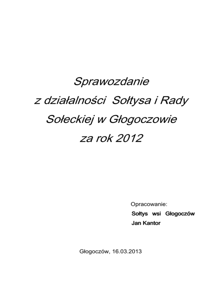 Sprawozdanie z działalności Sołtysa i Rady Sołeckiej w