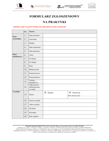 FORMULARZ ZGŁOSZENIOWY NA PRAKTYKI