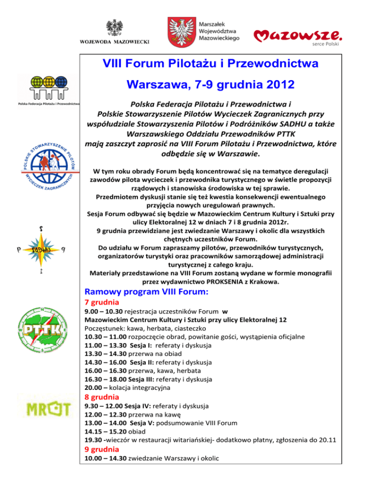 VIII Forum Pilotażu i Przewodnictwa Warszawa, 7