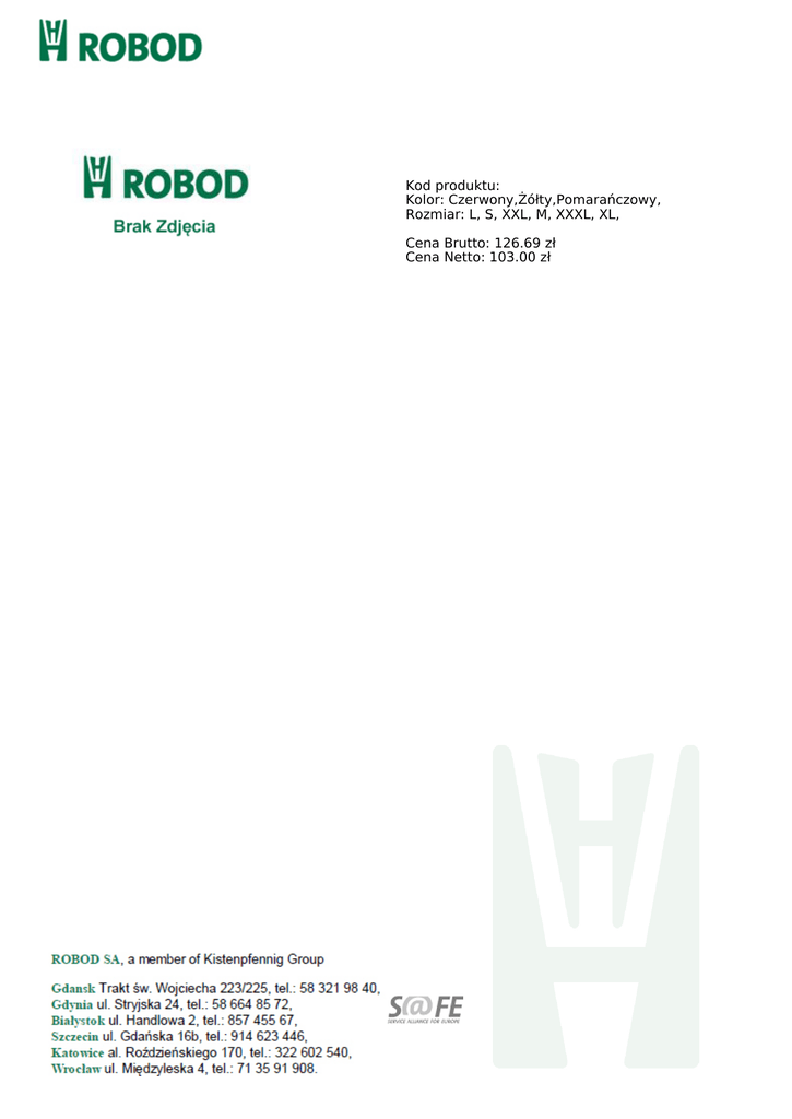 Kod produktu: Kolor: Czerwony,Żółty,Pomarańczowy, Rozmiar: L, S, XXL, M, XXXL, XL, Cena Brutto: 126.69 zł Cena Netto: 103.00 zł
