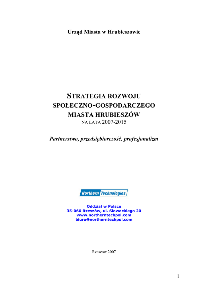 Urząd Miasta w Hrubieszowie STRATEGIA ROZWOJU SPOŁECZNO-GOSPODARCZEGO MIASTA HRUBIESZÓW NA LATA 2007-2015 Partnerstwo, przedsiębiorczość, profesjonalizm Oddział w Polsce 35-060 Rzeszów, ul. Słowackiego 20 www.northerntechpol.com [email protected] Rzeszów 2007 1 Spis treści Syntetyczne ujęcie strategii rozwoju .......................................3 Rozdział 1. Wprowadzenie .........................................................6 1.1. Przesłanki aktualizacji strategii ............................................6 1.2. Metodologia prac nad strategią ............................................7 Rozdział 2. Bilans strategiczny ..................................................12 2.1. Uwagi metodologiczne .........................................................12 2.2. Uwarunkowania o charakterze geograficznym i historycznym .............................................................................14 2.3. Dane szczegółowe ................................................................23 Rozdział 3. Analiza strategiczna ................................................33 3.1.Analiza SWOT ......................................................................33 Rozdział 4. Misja i wizja ............................................................50 Rozdział 5 Kierunki rozwoju do 2015roku – Perspektywy strategiczne .................................................................................. 52 5.1. Opis poszczególnych priorytetów i celów rozwojowych oraz sposobu ich realizacji ..................................................................53 5.2. Perspektywa mieszkańca ......................................................54 5.3. Perspektywa finansowa ........................................................57 5.4. Perspektywa procesów wewnętrznych zarządzania samorządowego ...........................................................................59 5.5. Perspektywa innowacji, nauki i rozwoju społecznego ........62 5.6. Tabelaryczne zestawienie celów, działań i mierników rezultatu .......................................................................................65 Rozdział 6. Zgodność strategii rozwoju społeczno-gospodarczego miasta z innymi dokumentami ................................................... 69 Rozdział 7. System monitoringu realizacji strategii .................. 79 7.1. Przyjęte mierniki kontrolne na poziomie strategii ...............79 7.2. Instytucje odpowiedzialne za realizację strategii .................79 7.3. Organizacja systemu monitorującego i procedury pomiarowoewaluacyjne oraz korekcyjne ......................................................80 2 Syntetyczne ujęcie strategii rozwoju. Członkostwo Polski w Unii Europejskiej i wynikający z tego długofalowy system programowania rozwoju lokalnego i regionalnego nakłada na administrację publiczną, rządowa i samorządową, obowiązek prowadzenia systematycznych prac planistycznych. Mają one na celu programowanie działań w obszarze rozwoju społeczno – gospodarczego oraz zarządzanie procesami inwestycyjnymi. Z uwagi na potrzebę posiadania precyzyjnych dokumentów programowych o różnych zakresach i horyzontach czasowych oraz różnym zasięgu terytorialnym konieczne jest stałe doskonalenie metodologii procesów planistycznych. Strategia jest całościową koncepcją rozwoju gminy, w tym wypadku gminy miejskiej. Jej istota polega na wyborze długoterminowych celów głównych i celów pośrednich oraz wyznaczenie metod ich osiągania. Jest to powiązane ze wskazaniem zasobów niezbędnych dla zrealizowania tych celów, w określonych warunkach, przy danych ograniczeniach oraz w ramach przyjętego horyzontu czasowego. Strategia rozwoju lokalnego jest koncepcją działania, zmierzającego do zrównoważonego i długotrwałego rozwoju, przedstawioną w formie zwartego dokumentu. Składa się z diagnozy stanu istniejącego, analizy SWOT – mocnych i słabych stron, szans i zagrożeń, misji, wizji, celów strategicznych i celów pośrednich, mechanizmu monitorowania realizacji i korygowania wdrażania strategii. Strategia rozwoju w zasadzie nie jest dokumentem zamkniętym ani w sensie merytorycznym ani czasowym. Strategiczne planowanie rozwoju jest rozumiane jako proces powtarzalny i interakcyjny. Ponieważ nie da się z góry przewidzieć wszystkich parametrów determinujących realizację strategii, konieczna jest stała weryfikacja przyjętych założeń, celów rozwoju i sposobów ich osiągania, a także dostosowywanie przedsięwzięć do realnych możliwości i do zmieniającej się rzeczywistości. Strategia powinna być traktowana nie jako jednorazowo opracowany końcowy dokument, ale jako podstawa do stałego kreowania, programowania i monitorowania rozwoju. Czemu służy misja i jaka jest jej rola w rozwoju gminy? Obecnie większość jednostek samorządowych, czy organizacji w Stanach Zjednoczonych i krajach Europy Zachodniej ma formalnie sformułowaną Misję (tzw. Deklarację Misji). Należy jednak wyraźnie odróżnić fakt posiadania takiego dokumentu od samej misji czy jej poczucia. Utożsamienie się z misją jest istotne, ponieważ jeśli członkowie społeczności lokalnej mają 3 wierzyć w ukierunkowany rozwój swojej gminy, muszą mieć poczucie, że ich gmina, istnieje po to, żeby coś osiągnąć. Koncepcja Misji, jej sposób rozumienia i realizacji, przekłada się na wszystkie aspekty i kierunki rozwoju gmin. Gdy członkowie społeczności lokalnej czy pracownicy danej jednostki rozumieją i wierzą w jasno sprecyzowane cele strategii rozwoju organizacji lub jednostki samorządowej oraz widzą jak inni wnoszą swój wkład w jego wzrost, przynosi to duży efekt motywacyjny. Dobrze sformułowana Misja powinna zawierać wszystkie z niżej przedstawionych elementów: 1. Cel - po co istniejemy, sens naszego istnienia. 2. Strategia - domeny działalności, obszary naszego działania, pozycje jakie chcemy zajmować oraz przewagi konk