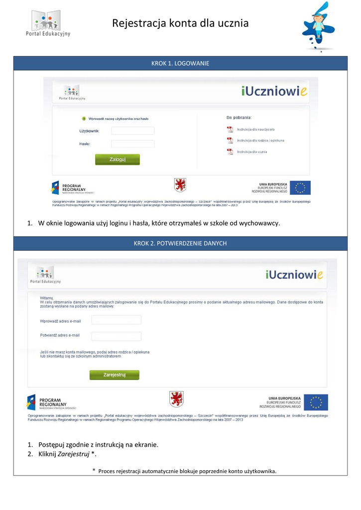 Rejestracja konta dla ucznia