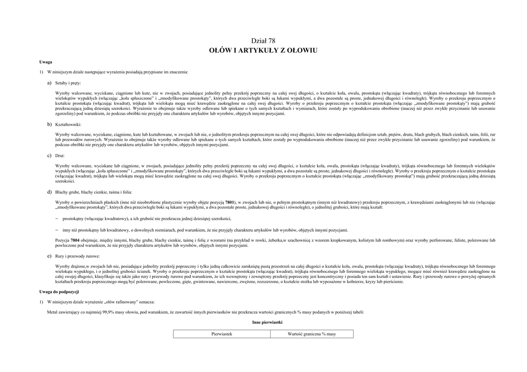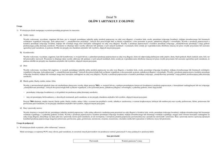 Dział 78 OŁÓW I ARTYKUŁY Z OŁOWIU