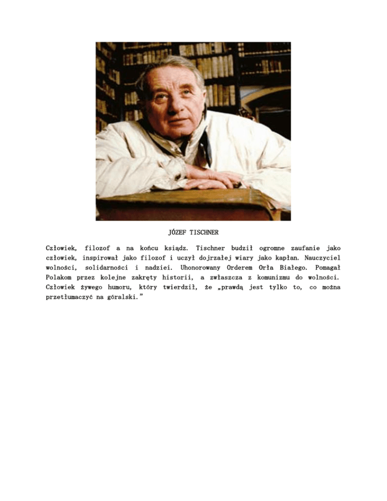 JÓZEF TISCHNER Człowiek, filozof a na końcu ksiądz. Tischner