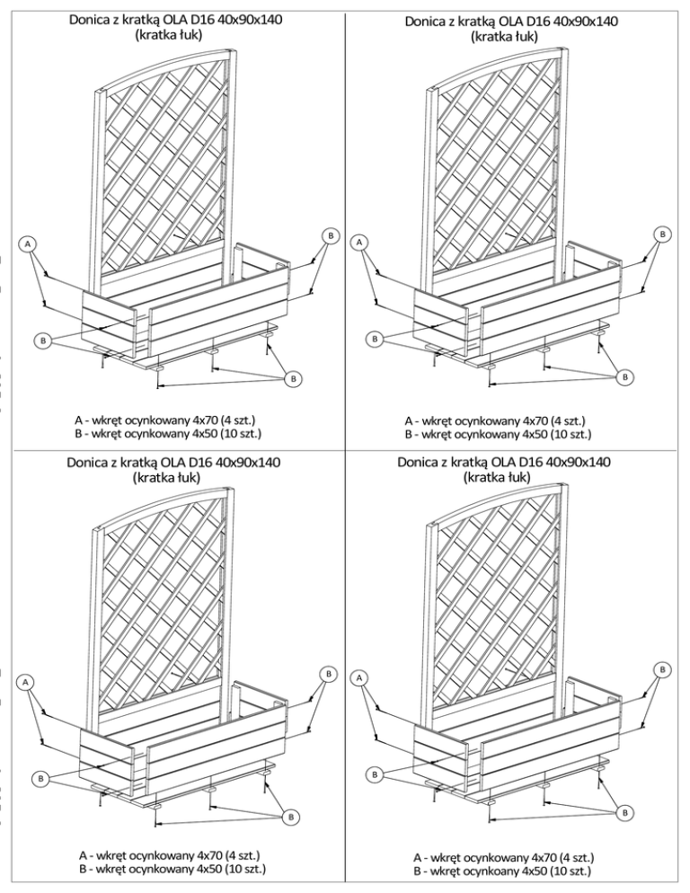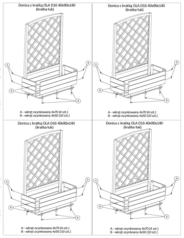 Donica z kratk OLA D16 40x90x140 (kratka uk) Donica z kratk OLA D16 40x90x140 (kratka uk) B A B A B B B B A - wkr t ocynkowany 4x70 (4 szt.) B - wkr t ocynkowany 4x50 (10 szt.) A - wkr t ocynkowany 4x70 (4 szt.) B - wkr t ocynkowany 4x50 (10 szt.) Donica z kratk OLA D16 40x90x140 (kratka uk) Donica z kratk OLA D16 40x90x140 (kratka uk) B A B A B B B B A - wkr t ocynkowany 4x70 (4 szt.) B - wkr t ocynkowany 4x50 (10 szt.) A - wkr t ocynkowany 4x70 (4 szt.) B - wkr t ocynkoany 4x50 (10 szt.)