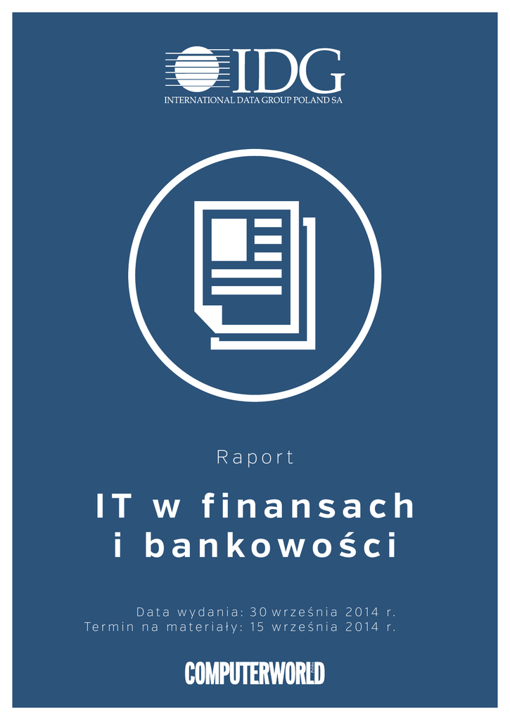 Raport IT w finansach i bankowości D a t a w yd a n i a : 3 0 w r z e ś n i a 2 0 1 4 r. Te r m i n n a m a t e r i a ł y : 1 5 w r z e ś n i a 2 0 1 4 r . Szanowni Państwo! Bankowość dotarła w chmury. Rozmawiamy z naszymi klientami i zyskujemy ich lojalność dzięki mediom społecznościowym. Analizujemy duże zbiory danych i prezentujemy dopasowane, spersonalizowane oferty produktowe. To już nie tylko hasła marketingowe. Nowoczesne rozwiązania IT pozwalają sektorowi bankowemu odnosić wymierne korzyści biznesowe, ale i spełniać wyśrubowane wymagania mobilnego klienta. Klienta w coraz mniejszym stopniu zainteresowanego odwiedzaniem oddziału bankowego, porzucanego na rzecz „bankowości w kieszeni” – towarzyszącej człowiekowi 24 godziny na dobę, w dowolnym miejscu na świecie. W raporcie Banking (Re)Invented przyjrzymy się właśnie takim rozwiązaniom i powiemy, jak są wykorzystywane, by podnieść efektywność organizacji i jej atrakcyjność w oczach klienta. Zapraszamy do współpracy Grupa docelowa Grupa docelowa • Kadra C-level (CIO, CEO, CFO) • Specjaliści IT – osoby odpowiedzialne za aspekt techniczny wdrożenia, utrzymania i zarządzania rozwiązaniami informatycznymi w firmie • Osoby zamawiające rozwiązania IT do firmy • Osoby odpowiedzialne za utrzymanie i rozwój bankowości mobilnej oraz internetowej Sektor: • Sektor bankowy • Dostawcy usług i rozwiązań IT Korzyści dla sponsora • Raport trafia w ręce osób bezpośrednio zainteresowanych wprowadzeniem nowych usług i rozwiązań do sektora bankowego. • Prezentuje całościowe spojrzenie na nowoczesne rozwiązania IT dla tego sektora i pokazuje, jak je wykorzystać by odnieść korzyści biznesowe. • Przekazuje informacje pozwalające przekuć wiedzę w sprzedaż. 2 Te m a t y k a 1. Trendy IT w bankowości w nadchodzących latach 2. Media społecznościowe: • Komunikacja M2M • Technologie biometryczne • Rozwiązania mobilne • Oddziały odmienione • Big Data • Gamifikacja • Crowdsourcing • Cyfrowa gotówka Fo r m a w yd a n i a ra p o r t u 250 egzemplarzy drukowanych • wysyłka kwalifikowana do szefów IT w instytucjach finansowych i bankowych wersja elektroniczna • promowana w serwisie www.computerworld.pl (kampania odsłonowa) • dedykowany mailing pobraniowy do bazy ponad 4 000 rekordów (baza Finanse/Bankowość/Ubezpieczenia; wg kryteriów: Marketing/ Sprzedaż, IT, poziom C-level) Krzysztof Pielesiek Włodzimierz Duszyk Beata Michalak m: +48 695 528 629, t: +4822 32 17 823 e: [email protected] m: +48 662 287 870, t: +4822 32 17 870 e: [email protected] m: +48 662 287 881, t: +4822 321 79 06 e: [email protected] Aspekty merytoryczne Osoba odpowiedzialna za sponsoring Osoba odpowiedzialna za sponsoring Agata Goździk Grażyna Skibniewska Adam Sobczyk m: 662 287 830, t: 22 32 17 830 e: [email protected] m: +48 662 287 895, t: +4822 32 17 895 e: [email protected] m: +48 662 287 881, t: +4822 321 78 81 e: [email protected] Osoba odpowiedzialna za sponsoring Osoba odpowiedzialna za sponsoring Osoba odpowiedzialna za sponsoring 3 Propozycja współpracy Partner Wydania • • • • • • Oficjalny tytuł Partnera Wydania z logo i prawem posługiwania się nim we własnych działaniach promocyjnych. Logo na okładce z informacją kto jest Partnerem Wydania Pasek na dole strony otwierającej temat z informacją kto jest Partnerem Wydania (logo firmy). 1 strona do wykorzystania w raporcie. Format do potwierdzenia. Materiał redakcyjny: do 2 stron (Executive Viewpoint lub Wypowiedź Eskperta). Dodatkowo: zamieszczenie dokumentów White Paper w serwisie Itstandard.pl - bibliotece White Paper (+ opcja generowania leadów). WARTOŚĆ PAKIETU: 20 000 zł netto Partner Tematu • • • • Oficjalny tytuł Partnera Tematu z logo i prawem posługiwania się nim we własnych działaniach promocyjnych. Pasek na dole strony otwierający dany temat z informacją kto jest Partnerem Tematu (logo firmy). 1 strona do wykorzystania w raporcie. Format do potwierdzenia. Materiał redakcyjny: 1 strona (Executive Viewpoint lub Wypowiedź Eskperta). WARTOŚĆ PAKIETU: 15 000 zł netto Executive Viewpoint / White Paper / Case Study Rozwiązanie dla firm, które chcą szeroko zakomunikować strategię. Reklama kontekstowa opisująca szczegółowo produkty lub ich wdrożenia. CENA: 1 strona: 12 000 zł netto Strony widzące: 17 000 zł netto Komentarz ekspercki CENA: 5 000 zł netto Reklama Projekty okładkowe: II okładka: 16 000 zł netto III okładka: 15 000 zł netto IV okładka: 17 000 zł netto 1/2 strony pion: 97x277 mm / poziom: 199x137 mm Strony widzące format do pot. w Biurze Reklamy 1/3 strony pion: 64x277 mm poziom: 199x95 mm Cena: 19 800 zł netto Cena: 7 850 zł netto Cena: 6 100 zł netto Cała strona 225x297 mm 1/4 strony 97x137 mm Junior page 148x210 mm Insert format 225x297 mm; 50 gr/m2 Cena: 13 200 zł netto Cena: 11 900 zł netto 4 Cena: 5 100 zł netto Cena: 11 900 zł netto