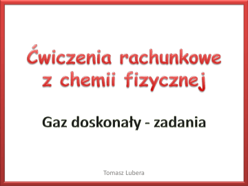 Tomasz Lubera Zadanie 1 •Zadanie: • Do zbudowania licznika Geigera należało sporządzić w butli o objętości 40 dm3 mieszaninę złożoną z 5% molowych C4H10 i 95% molowych Ar. W tym celu pustą butlę napełniano C4H10 do osiągnięcia ciśnienia 750,62 Tr a następnie wprowadzono odpowiednią objętość sprężonego Ar. Oblicz masę Ar i sumaryczne ciśnienie panujące w butli. Wszystkie czynności wykonano w temperaturze 24 oC. •Odpowiedź: • mAr = 1230,5 g; pcałkowite = 2 ∙ 106 Pa Ćwiczenia rachunkowe z chemii fizycznej - Gaz doskonały - zadania Fotografia: http://pl.wikipedia.org/ 2 Zadanie 2 •Zadanie: • Prężność pary nasyconej w temperaturze 323 K wynosi 1,233 ∙ 104 Pa. Oblicz skład powietrza nasyconego parą wodną, jego średnią masę cząsteczkową i gęstość w temperaturze 50 oC pod ciśnieniem 1 atm przyjmując że suche powietrze zawiera 20% molowych O2 i 80% molowych N2. •Odpowiedź: • xH2O = 0,122; xO2 = 0,145; xN2 = 0,703; • Mśrednia = 27,48 g∙mol-1; • ρcałkowite = 1,037 ∙ 103 g∙m-3 Ćwiczenia rachunkowe z chemii fizycznej - Gaz doskonały - zadania 3 Zadanie 3 •Zadanie: • W naczyniu o objętości 2,12 dm3 umieszczono 9,2 g N2O4, który ulega dysocjacji zgodnie z równaniem: N2O4⇌NO2 W temperaturze 300 K ciśnienie w naczyniu wynosi 2 bar. Oblicz stopień dysocjacji N2O4. •Odpowiedź: • α = 0,7 Fotografia: http://pl.wikipedia.org/ Ćwiczenia rachunkowe z chemii fizycznej - Gaz doskonały - zadania 4 Zadanie 4 •Zadanie: • Butla o objętości 11 dm3 zawiera 20 g neonu (M = 20 g∙mol-1) oraz nieznaczną ilość wodoru. Gęstość mieszaniny w temperaturze 0 oC wynosi 0,002 g∙cm-3. Oblicz średnią masę cząsteczkową mieszaniny, liczbę gramów wodoru znajdującego się w butli oraz panujące w jej wnętrzu ciśnienie. •Odpowiedź: • mH2 = 2 g; • Mśrednia = 11 g∙mol-1; • p = 4,1255 ∙ 105 Pa Fotografia: http://pl.wikipedia.org/ Ćwiczenia rachunkowe z chemii fizycznej - Gaz doskonały - zadania 5 Zadanie 5 •Zadanie: • W odpowiednio wysokich temperaturach wodór cząsteczkowy dysocjuje na atomy. Oblicz gęstość wodoru w temperaturze 2000 oC i pod ciśnieniem 1 bar jeżeli rozpadowi na atomy uległo 33% cząsteczek H2. Zarówno wodór cząsteczkowy jak i atomowy traktujemy jako gazy doskonałe. •Odpowiedź: • ρ = 8 g/cm3 Ćwiczenia rachunkowe z chemii fizycznej - Gaz doskonały - zadania 6
