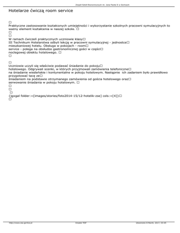 noclegowej obiektu hotelowego. Uczniowie uczyli się właściwie podawać śniadanie do pokoju