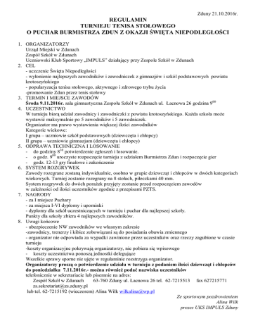 Regulamin turnieju - Zespół Szkół w ZDUNACH