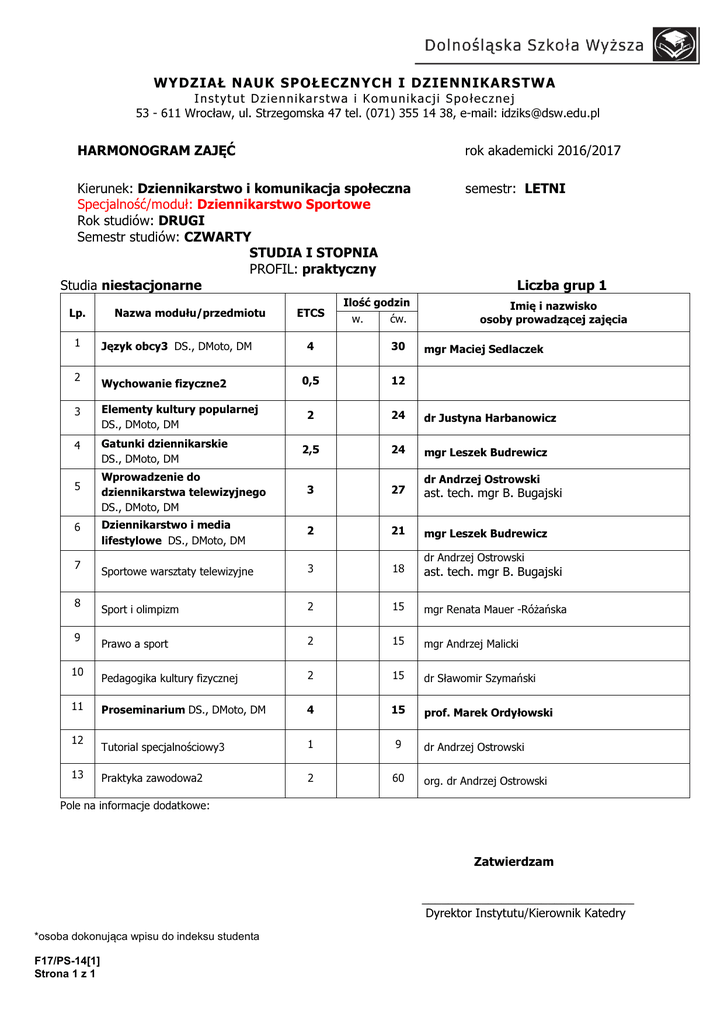 Rok II semestr 4 - Instytut Dziennikarstwa i Komunikacji Społecznej