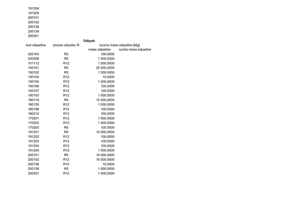 frakcja lekka i pyłów niezawierających substancji niebezpiecznych