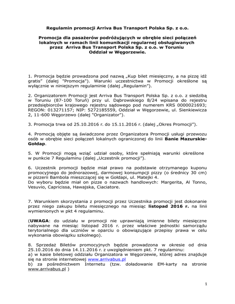 1 Regulamin promocji Arriva Bus Transport Polska Sp. z o.o.