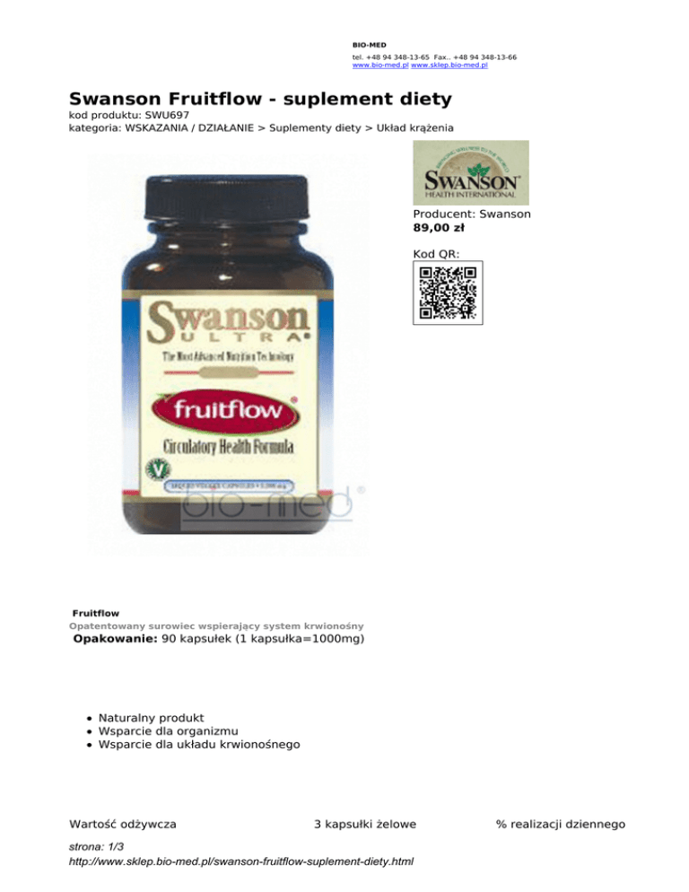 Swanson Fruitflow - suplement diety - bio-med