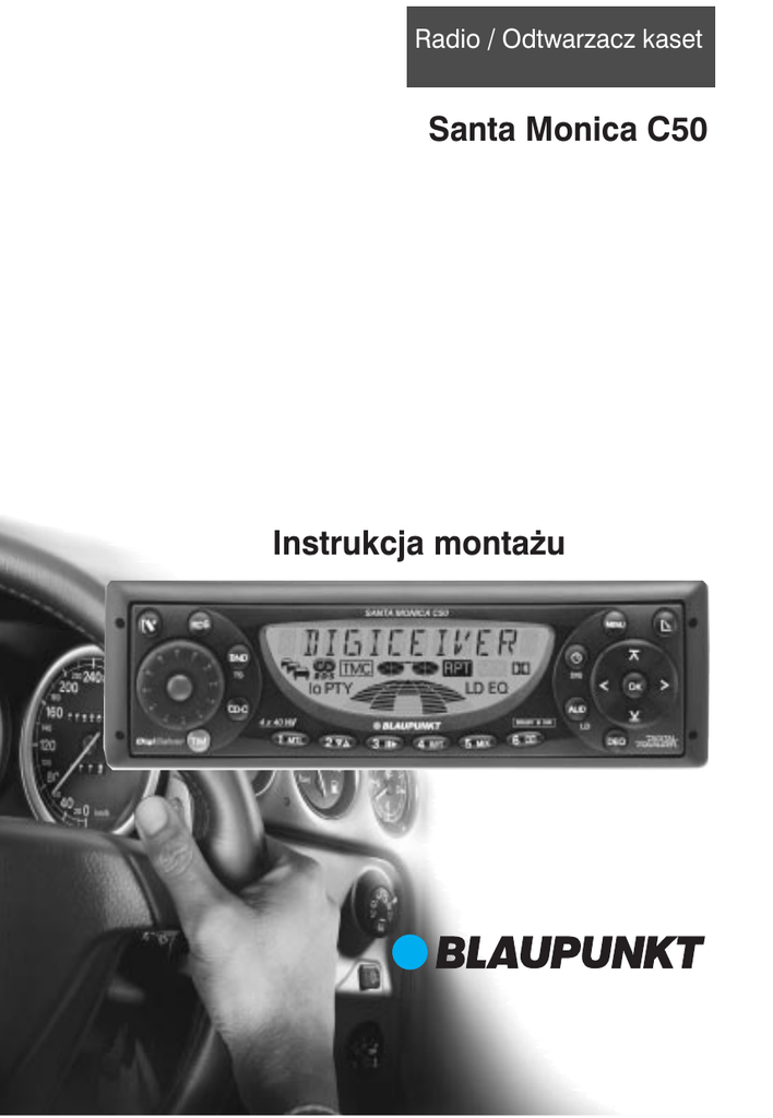 Radio / Odtwarzacz kaset Santa Monica C50 Instrukcja monta¿u INSTRUKCJA MONTA˚U PL ! Zalecenia dotyczàce bezpieczeƒstwa W czasie monta˝u i pod∏àczania prosimy Paƒstwa o przestrzeganie niniejszych zaleceƒ dotyczàcych bezpieczeƒstwa. ➮ Zdjàç przewód minusa z akumulatora! Prosimy uwzgl´dniç i przestrzegaç w tym zakresie zalecenia producenta pojazdu. ➮ Przy wierceniu otworów nale˝y zwracaç uwag´, aby nie uszkodziç elementów samochodu. ➮ Przekrój przewodu zasilania, dla plusa i minusa, nie mo˝e byç mniejszy od 1,5 mm2. ➮ B∏´dy w pod∏àczeniu mogà wprowadziç zak∏ócenia do systemu elektroniki pojazdu lub do radioodtwarzacza. ➮ Nie nale˝y pod∏àczaç do radioodtwarzacza z∏àczy wtykowych od strony pojazdu! ➮ Przewody niezb´dne do pod∏àczenia radioodtwarzacza w Paƒstwa samochodzie, sà do otrzymania w fachowej sieci handlowej autoryzowanej przez firm´ BLAUPUNKT. 26 INSTRUKCJA MONTA˚U Dostarczone razem z radioodtwarzaczem elementy do pod∏àczenia oraz monta˝u 1. ! B A D E C 112 2V V F G 2. D C 182 165 53 1-20 A 27 INSTRUKCJA MONTA˚U 4. A 3. E F Antenne Antena 7 607 621 Przewody niezb´dne do pod∏àczenia radioodtwarzacza w Paƒstwa samochodzie, sà do otrzymania w fachowej sieci handlowej autoryzowanej przez firm´ BLAUPUNKT. 5. 8 601 002 8 601910 910 002 1 2 Wiàzka przewodów poÊrednich (adapter) 7 607 609 093 B 1 2 6. 1122 V V 28 INSTRUKCJA MONTA˚U 7. C-1 10 2 6 7 8 5 6 1 3 4 2 13 16 19 9 12 8 11 5 1 D 7 10 4 3 2 9 1 C-2 C-3 15 18 14 17 20 3 5 7 4 6 8 1 3 5 7 2 4 6 8 A B A B 1 Automatic Sound 1 2 Radio Mute 2 Speaker out RR- NC 3 Speaker out RF+ 4 Permanent +12V 4 Speaker out RF- 5 Aut. antenna 5 Speaker out LF+ 6 Illumination 6 Speaker out LF- 7 Kl.15/Ignition 7 Speaker out LR+ 8 Ground 8 Speaker out LR- A D 1 2 3 4 5 6 7 8 9 10 Speaker out RR+ 3 automat. dêwi´k 1 WyjÊcie g∏oÊnikowe PR+ 2 wyciszanie radia 2 WyjÊcie g∏oÊnikowe PR- 3 wolny 3 WyjÊcie g∏oÊnikowe PF+ 4 akumulator +12V 4 WyjÊcie g∏oÊnikowe PF- 5 automatyczna antena 5 WyjÊcie g∏oÊnikowe LF+ 6 oÊwietlenie 6 WyjÊcie g∏oÊnikowe LF- 7 zacisk 15/zap∏on 7 WyjÊcie g∏oÊnikowe LR+ 8 masa 8 WyjÊcie g∏oÊnikowe LR- R – ty∏ F – przód AUX 2- NF L AUX 2- NF R AUX 2- REF NC NC NC NC NC NC NC D B 1 P – prawy L – lewy C 1 2 3 4 5 6 7 8 9 10 AUX 2- m.cz. P AUX 2- m.cz. L AUX 2- ster. wolny wolny wolny wolny wolny wolny wolny np. PR – prawy / ty∏ LF – lewy / przód 29 INSTRUKCJA MONTA˚U 7a. C C1 C2 C3 1 Line Out LR 7 Telefon / Navi NF in + 13 Bus – In 2 Line Out RR 8 Telefon / Navi NF in - 14 Bus – Out Permanent +12V 3 Line Out Masse / Ground 9 Radio / Navi Mute 15 4 Line Out LF 10 FB +12V / RC + 12V 16 +12V 5 Line Out RF 11 Fernbedienung / Remote Control 17 Bus – Masse / GND 6 + 12V Amplifier 12 FB – Masse / RC – GND 18 AF – Masse / GND Equlizer Korektor Amplifier Wzmacniacz 19 Line In – L 20 Line In – R Remote Control Zdalne sterowanie CD – Changer Zmieniacz p∏yt CD C C1 C3 1 wyjÊcie liniowe LR 7 telefon / nawigacja m. cz. wej. + 13 2 wyjÊcie liniowe PR 8 telefon / nawigacja m. cz. wej. _ 14 Bus – wyjÊcie 3 linia wyj. / masa 9 wyciszenie radia / nawigacja 15 akumulator+12V 4 linia wyjÊcie LF 10 prze∏àczane +12V zdalne sterow. 16 prze∏àczane +12V 5 linia wyjÊcie PF 11 zdalne sterowanie 17 Bus – masa 6 prze∏àcz.+12V wzmacniacz 12 masa – zdalne sterowanie 18 audio – masa P – prawy L – lewy 30 C2 R – ty∏ F – przód Bus – wejÊcie 19 linia wejÊcie – L 20 linia wyjÊcie – P np. PR – prawy / ty∏ LF – lewy / przód INSTRUKCJA MONTA˚U 8. 12V (max. 150 mA) Relais RR R F LF Ohm 44 Ohm + + + + - LR Ohm 4 Ohm Ohm 4 Ohm 44 Ohm Ohm 7 607 621 222 10A Kl. 15 +12V 1 35 2 7 8 4 6 8 604 492 320 Radio Mute (low) 12V Legenda: Radio Mute – wyciszanie telefonem (poziom niski) Zastrzegamy sobie mo˝liwoÊç wprowadzania zmian! 31