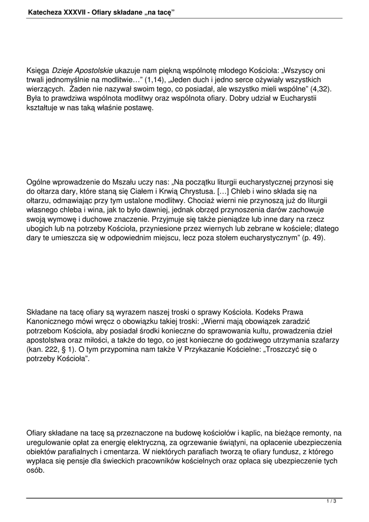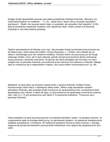 Katecheza XXXVII - Ofiary składane „na tacę”