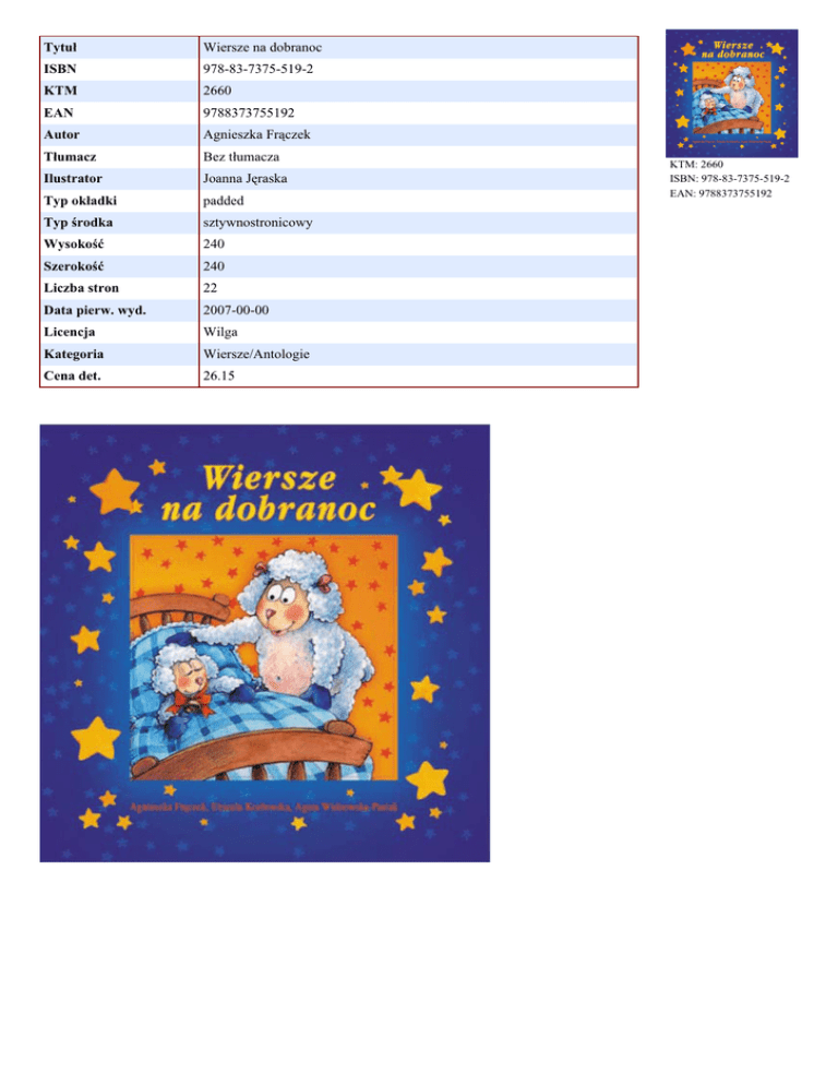 Tytuł Wiersze na dobranoc ISBN 978-83-7375-519