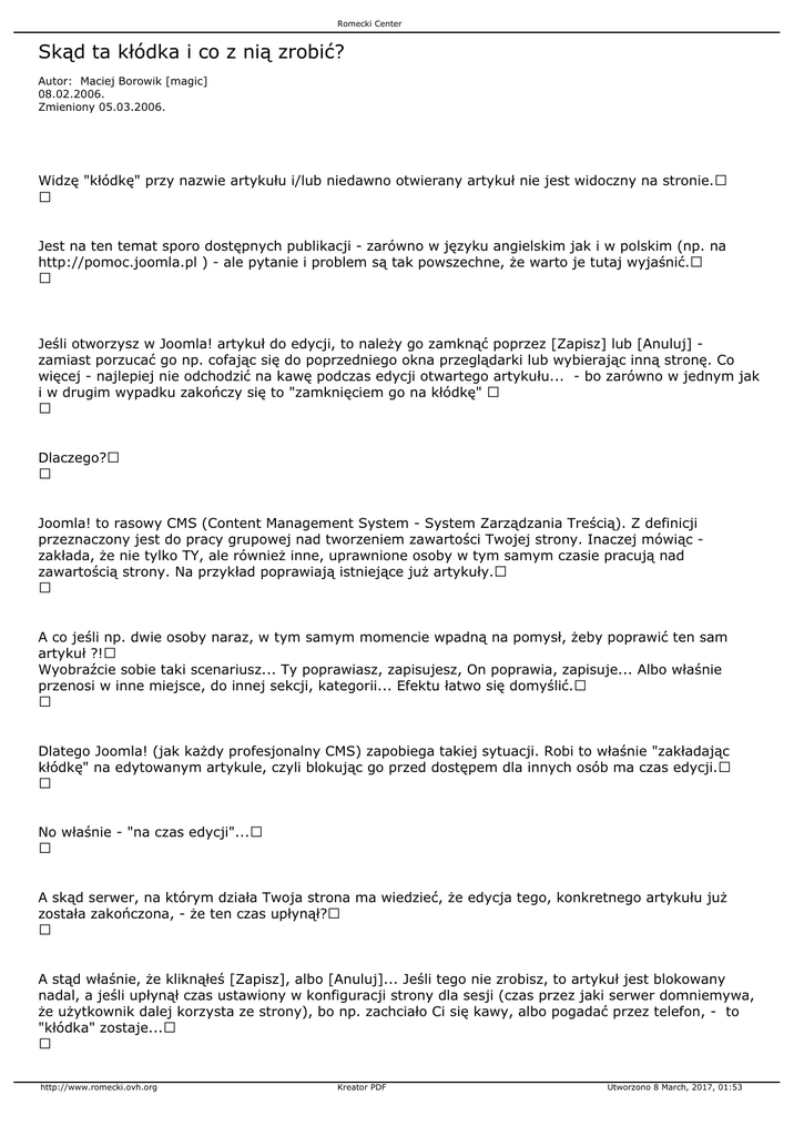 kłódkę" na edytowanym artykule, czyli blokując go przed dostępem dla innych osób ma czas edycji.