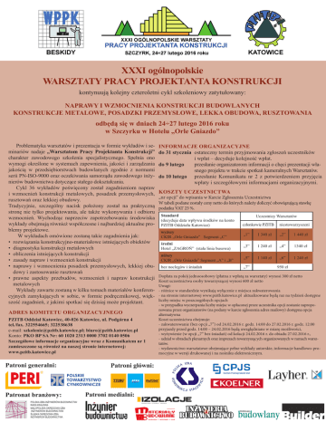 XXXI ogólnopolskie WARSZTATY PRACY PROJEKTANTA
