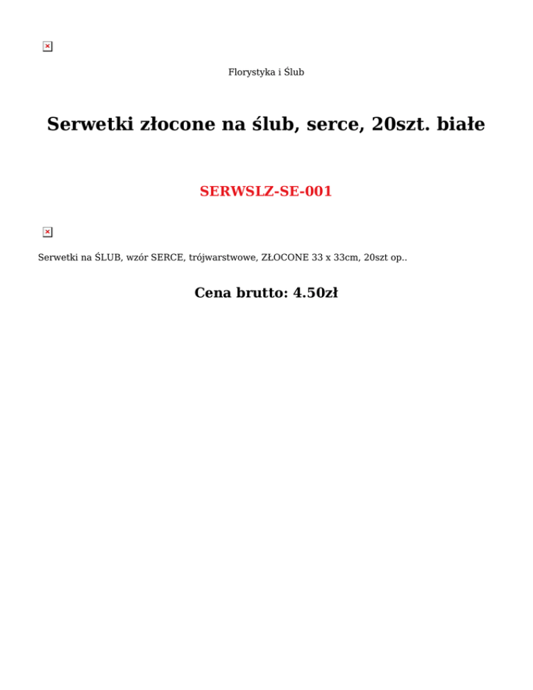 Florystyka i Ślub Serwetki złocone na ślub, serce, 20szt. białe SERWSLZ-SE-001 Serwetki na ŚLUB, wzór SERCE, trójwarstwowe, ZŁOCONE 33 x 33cm, 20szt op.. Cena brutto: 4.50zł