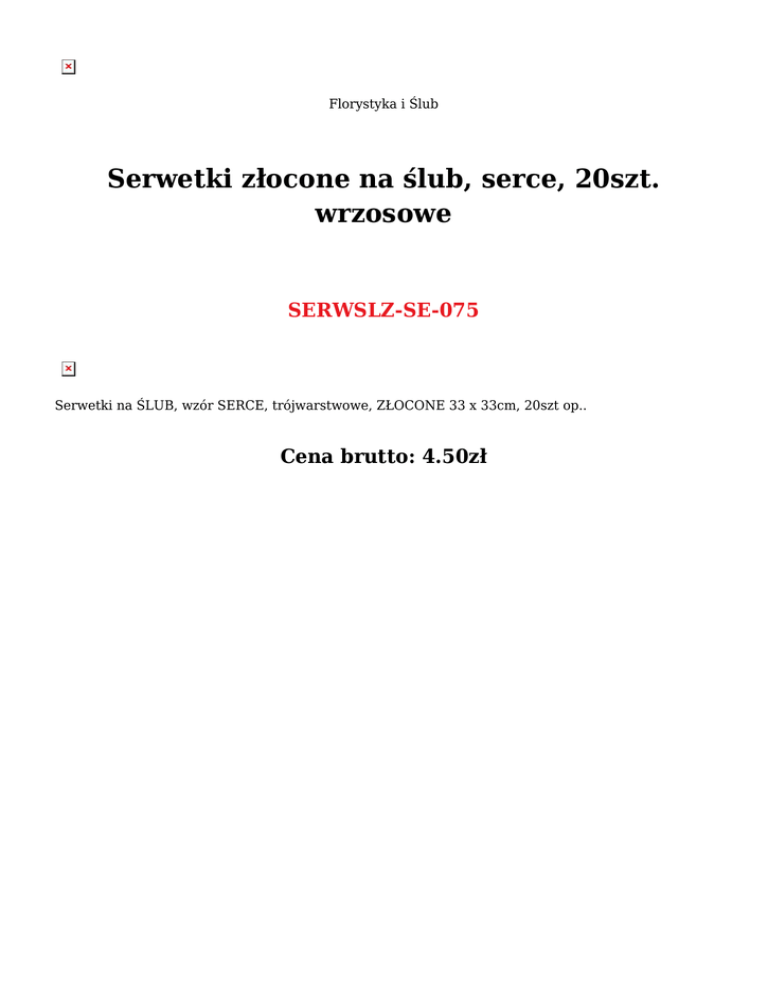 Florystyka i Ślub Serwetki złocone na ślub, serce, 20szt. wrzosowe SERWSLZ-SE-075 Serwetki na ŚLUB, wzór SERCE, trójwarstwowe, ZŁOCONE 33 x 33cm, 20szt op.. Cena brutto: 4.50zł