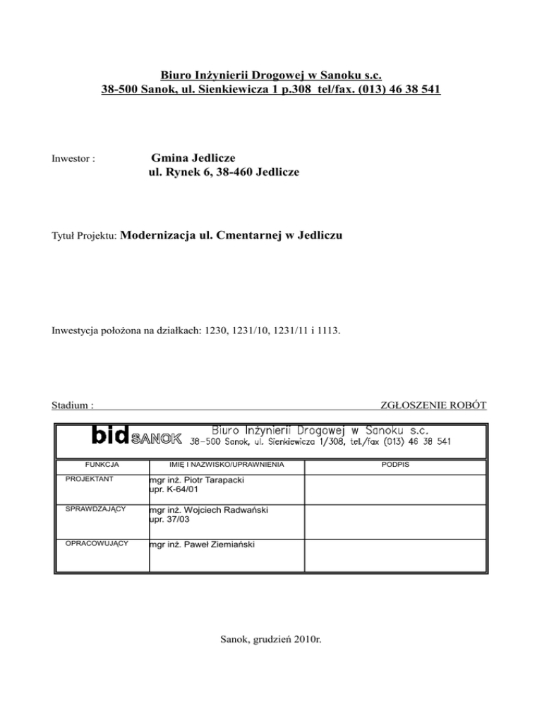 Biuro Inżynierii Drogowej w Sanoku sc 38-500 Sanok, ul