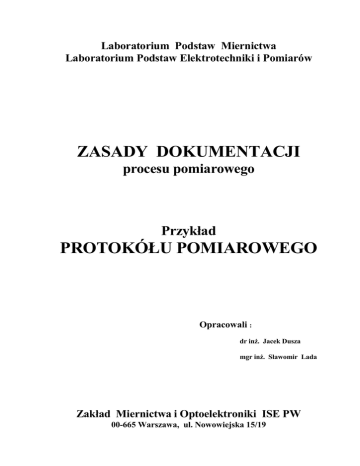 ZASADY DOKUMENTACJI PROTOKÓŁU POMIAROWEGO