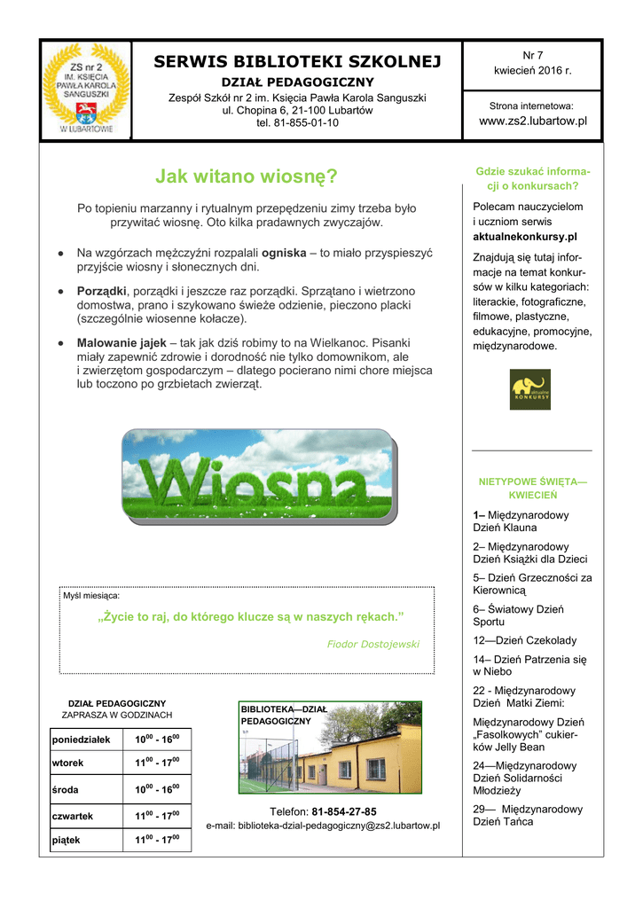 SERWIS BIBLIOTEKI SZKOLNEJ Nr 7 kwiecień 2016