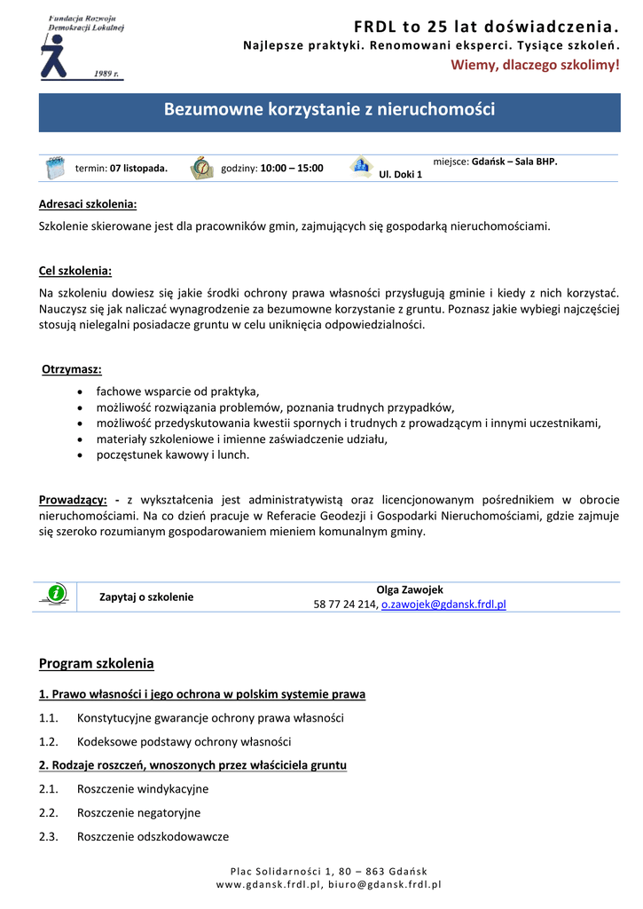 Szczegółowe informacje o szkoleniu + standardowy formularz