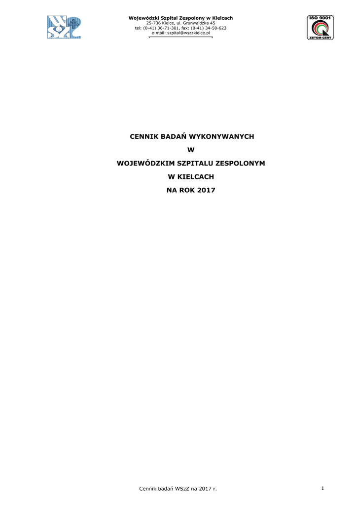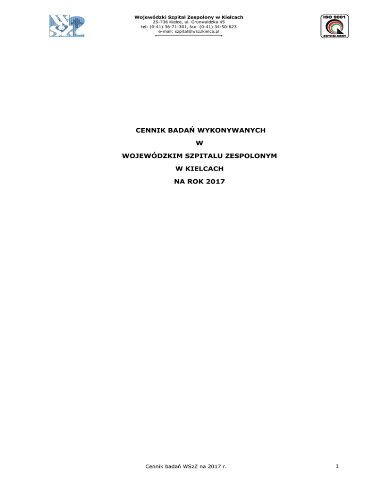 Cennik - Wojewódzki Szpital Zespolony w Kielcach