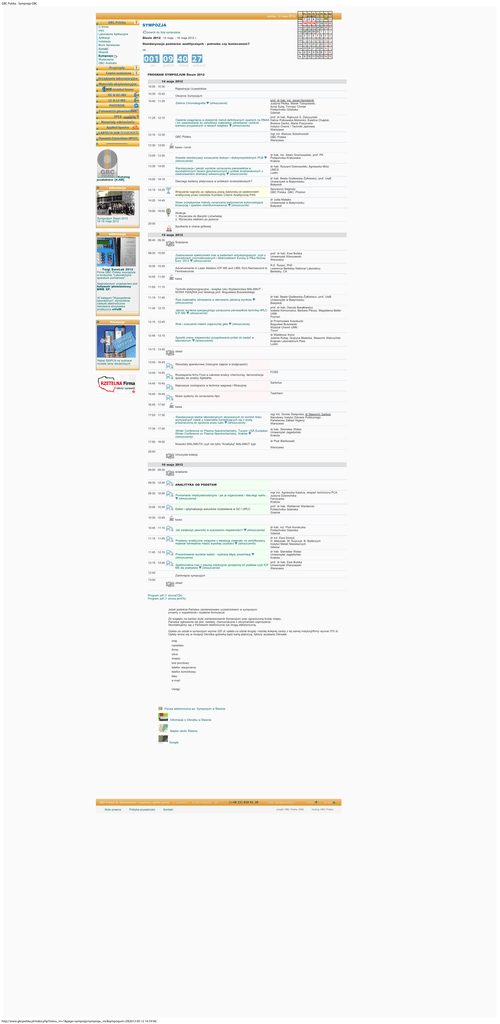 GBC Polska - Sympozja GBC Po Wt Śr Cz Pt So Nd sobota, 12 maja 2012r. szukaj: maj 7 SYMPOZJA O firmie intro Laboratoria Aplikacyjne Aplikacje Instalacja Biuro Serwisowe Kontakt Słownik Sympozja Wydarzenia GBC Australia 8 9 10 11 12 13 maj 14 15 16 17 18 19 20 maj 21 22 23 24 25 26 27 maj 28 29 30 31 1 powrót do listy sympozjów cze 4 Ślesin 2012 14 maja - 16 maja 2012 r. 5 6 7 8 2 3 9 10 cze 11 12 13 14 15 16 17 Standaryzacja pomiarów analitycznych - potrzeba czy konieczność? cze 18 19 20 21 22 23 24 cze 25 26 27 28 29 30 1 za: dni godzin minut lip 2 3 lip 9 10 11 12 13 14 15 4 5 6 7 8 sekund PROGRAM SYMPOZJUM Ślesin 2012 14 maja 2012 . 10:00 10:30 Rejestracja Uczestników 10:30 . 10:40 Otwarcie Sympozjum prof. dr hab. inż. Jacek Namieśnik Justyna Płotka, Marek Tobiszewski, Anna Sulej, Tomasz Chmiel Politechnika Gdańska Gdańsk . 10:40 11:25 Zielona Chromatografia prof. dr hab. Rajmund S. Dybczyński Ostatnie osiągnięcia w dziedzinie metod definitywnych opartych na RNAA Halina Polkowska-Motrenko, Ewelina Chajduk, i ich zastosowanie do certyfikacji materiałów odniesienia i kontroli Bożena Danko, Marta Pyszynska wartości przypisanych w testach biegłości (streszczenie) Instytut Chemii i Techniki Jądrowej Warszawa 11:25 . 12:10 12:10 . 12:30 kawa i lunch 13:00 . 13:30 13:30 . 14:00 Informacja 14:00 . 14:15 14:15 . 14:25 Kwestie standaryzacji oznaczania dioksyn i dioksynopodobnych PCB (streszczenie) dr hab. inż. Adam Grochowalski, prof. PK Politechnika Krakowska Kraków Standaryzacja i jakość wyników oznaczania pierwiastków w wyodrębnionych fazach geochemicznych z próbek środowiskowych z zastosowaniem ekstrakcji sekwencyjnej (streszczenie) dr hab. Ryszard Dobrowolski, Agnieszka Mróz UMCS Lublin Dlaczego badamy platynowce w próbkach środowiskowych? dr hab. Beata Godlewska-Żyłkiewicz, prof. UwB Uniwersytet w Białymstoku Białystok Sponsorzy Nagrody: GBC Polska, GBC, Photron Wręczenie nagrody za najlepszą pracę doktorską ze spektrometrii analitycznej przez członków Komitetu Chemii Analitycznej PAN 14:25 . 14:45 dr Julita Malejko Uniwersytet w Białymstoku Białystok Nowe przepływowe metody oznaczania platynowcow wykorzystujące biosorpcję i zjawisko chemiluminescencji (streszczenie) 15:00 . 18:00 Sympozjum Ślesin 2012 14-16 maja 2012 mgr inż. Mariusz Szkolmowski GBC Polska Warszawa GBC Polska 12:30 . 13:00 Katalog produktów [4.4M] (streszczenie) Atrakcje: 1. Wycieczka do Bazyliki Licheńskiej 2. Wycieczka statkiem po jeziorze 20:00 Spotkanie w chacie grillowej Informacja 15 maja 2012 08:45 . 09:30 Śniadanie 09:30 . 10:00 - Targi EuroLab 2012 Firma GBC Polska zwyciężyła w konkursie "Laboratoryjna aparatura pomiarowa". Nagrodzonym urządzeniem jest fotometr płomieniowy BWB XP. W kategorii "Wyposażenie laboratarium" wyróżnienie zdobyła elektronicznie sterowana strzykawka analityczna eVolR. Promocje 10:00 . 10:45 10:45 . 11:00 prof. dr hab. Ewa Bulska Uniwersytet Warszawski Warszawa Advancements in Laser Ablation ICP-MS and LIBS; from Nanosecond to Femtoseconds R.E. Russo, PhD Lawrence Berkeley National Laboratory Berkeley, CA kawa 11:00 . 11:15 Techniki elektromigracyjne - książka roku Wydawnictwa MALAMUT NOWA KSIĄŻKA pod redakcją prof. Bogusława Buszewskiego 11:15 . 11:45 Rola materiałów odniesienia w sterowaniu jakością wyników (streszczenie) dr hab. Beata Godlewska-Żyłkiewicz, prof. UwB Uniwersytet w Białymstoku Białystok prof. dr hab. Danuta Barałkiewicz Jakość wyników specjacyjnego oznaczania pierwiastków techniką HPLC- Izabela Komorowicz, Barbara Pikosz, Magdalena Belter ICP-MS (streszczenie) UAM Poznań 11:45 . 12:15 12:15 . 12:45 Rola i znaczenie materii organicznej gleb 12:45 . 13:15 (streszczenie) Sposób oceny niepewności przygotowania próbki do badań w laboratorium (streszczenie) 13:15 . 13:45 Rabat 500PLN na wybrane modele lamp deuterowych Zastosowanie spektrometrii mas w badaniach antydopingowych: czyli o procedurach znormalizowanych i Mistrzostwach Europy w Piłce Nożnej Euro '2012 (streszczenie) dr Przemysław Kosobucki Bogusław Buszewski Wydział Chemii UMK Toruń dr Waldemar Korol Jolanta Rubaj, Grażyna Bielecka, Sławomir Walczyński Krajowe Laboratorium Pasz Lublin obiad 13:45 . 16:45 Warsztaty aparaturowe (rotacyjne zajęcia w podgrupach) 13:45 . 14:45 Rozwiązania firmy Foss w zakresie analizy chemicznej; demonstracja aparatu do analizy Kjeldahla 14:45 . 15:45 Sartorius Najnowsze rozwiązania w technice wagowej i filtracyjnej 15:45 . 16:45 Testchem Nowe systemy do oznaczania rtęci 16:45 . 17:00 FOSS kawa 17:00 . 17:30 Standaryzacja testów laboratoryjnych stosowanych do kontroli ilości wymywanych metali z materiałów kontaktujących się z wodą przeznaczoną do spożycia przez ludzi (streszczenie) 17:30 . 17:50 mgr inż. Dorota Święcicka, dr Sławomir Garboś Narodowy Instytut Zdrowia Publicznego Państwowy Zakład Higieny Warszawa dr hab. Stanisław Walas Winter Conference on Plasma Spectrochemistry, Tucson USA European Uniwersytet Jagielloński Winter Conference on Plasma Spectrochemistry, Kraków Kraków (streszczenie) 17:50 . 18:00 Nowości MALAMUTA czyli nie tylko "Analityką" MALAMUT żyje dr Piotr Bieńkowski Warszawa 20:00 Uroczysta kolacja 16 maja 2012 . 09:00 09:30 śniadanie 09:30 . 12:45 ANALITYKA OD PODSTAW mgr inż. Agnieszka Kalarus, ekspert techniczny PCA Porównania międzylaboratoryjne - jak je organizować i dlaczego warto... Justyna Dziewońska (streszczenie) Ferrocarbo Kraków 09:30 . 10:00 10:00 . 10:30 Dobór i optymalizacja warunków rozdzielania w GC i HPLC 10:30 . 10:45 prof. dr hab. Waldemar Wardencki Politechnika Gdańska Gdańsk kawa 10:45 . 11:15 Jak zwiększyć pewność w szacowaniu niepewności? 11:15 . 11:45 11:45 . 12:15 (streszczenie) dr hab. inż. Piotr Konieczka Politechnika Gdańska Gdańsk Problemy analityczne związane z atestacją materiału na certyfikowany materiał odniesienia miedzi wysokiej czystości (streszczenie) dr inż. Ewa Szmyd H. Matusi