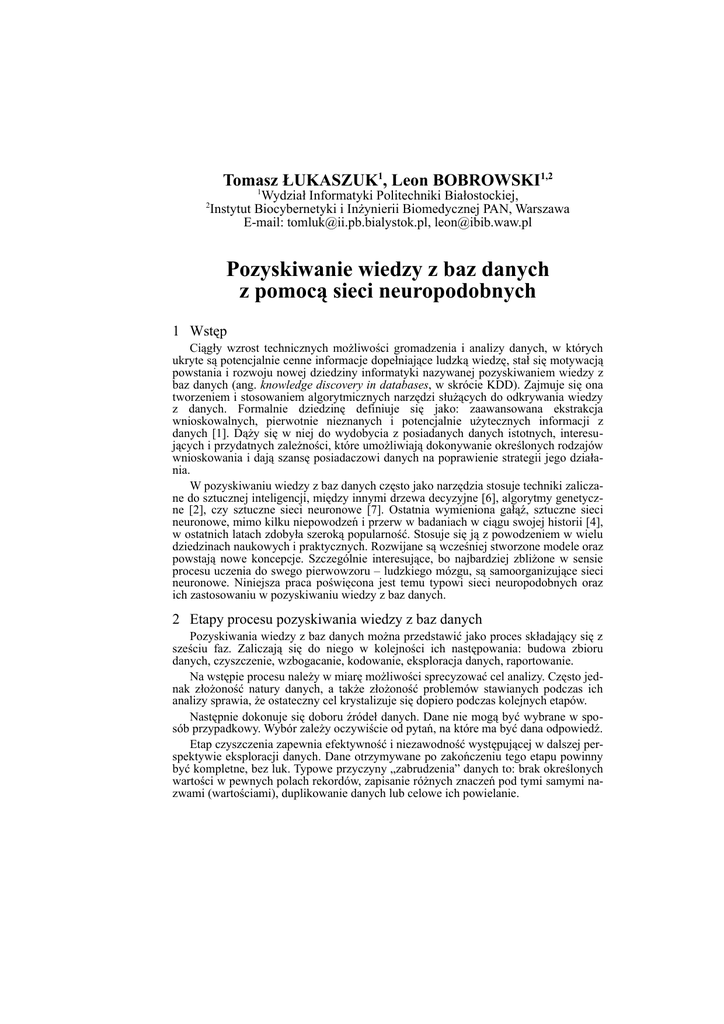 Tomasz ŁUKASZUK1, Leon BOBROWSKI1,2