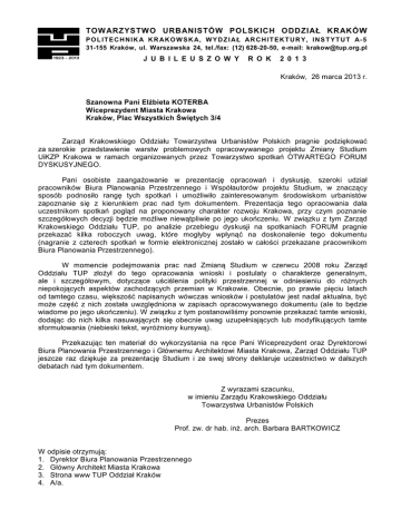 TOWARZYSTWO URBANISTÓW POLSKICH ODDZIAŁ KRAKÓW