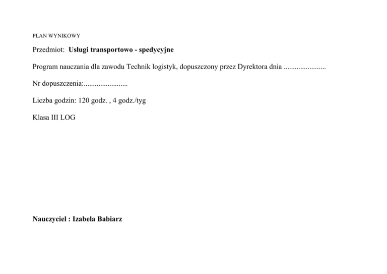 Przedmiot: Usługi transportowo - spedycyjne Program nauczania