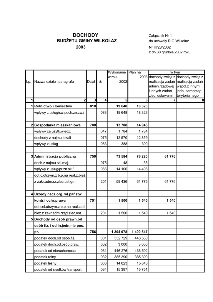 dochody 2003 - Urząd Gminy Wilkołaz