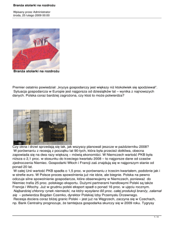 Branża stolarki na rozdrożu Wpisany przez Administrator środa, 25 lutego 2009 00:00 Branża stolarki na rozdrożu Premier ostatnio powiedział: „kryzys gospodarczy jest większy niż ktokolwiek się spodziewał”. Sytuacja gospodarcza w Europie jest najgorsza od dziesiątków lat – wynika z najnowszych danych. Polska coraz bardziej zagrożona, czy ktoś to może potwierdza? Czy okna i drzwi sprzedają się tak, jak wszyscy planowali jeszcze w październiku 2008? W porównaniu z recesją z początku lat 90-tych, która była przecież dotkliwa, obecna zapowiada się na dwa razy większą – mówią ekonomiści. W Niemczech wartość PKB była niższa o 2,1 proc. w stosunku do trzeciego kwartału 2008 – to najgorsze dane od czasów zjednoczenia Niemiec. Gospodarki Włoch i Francji zaś znajdują się w najgorszym stanie od ponad 20 lat. W całej Unii wartość PKB spadła o 1,5 proc. w porównaniu z trzecim kwartałem, podobnie jak i w strefie euro. W Polsce proces spowolnienia już nie idzie, ale biegnie. Polska na pewno odczuje silne spowolnienie gospodarcze, które obserwujemy w Niemczech, ponieważ do Niemiec trafia 25 proc. polskiego eksportu. Dużymi partnerami handlowymi Polski są także Francja i Włochy. Już w grudniu polski eksport spadł o ponad 16 proc. w ujęciu rocznym. Najbardziej chłonny rynek niemiecki, na który wysyłano 60 proc. całej produkcji branży, załamał się – potwierdza Bogdan Czemko, dyrektor Polskiej Izby Przemysłu Drzewnego. Recesja dociera coraz bliżej granic Polski – jest już na Węgrzech, zaczyna się w Czechach, np. Bank Centralny prognozuje, że tamtejsza gospodarka skurczy się w 2009 roku. Tygrysy 1/4 Branża stolarki na rozdrożu Wpisany przez Administrator środa, 25 lutego 2009 00:00 Europy, kraje takie jak Litwa, Łotwa czy Estonia zamieniły się w małe kotki, a nawet Słowacja, która niedawno weszła do strefy euro i cieszyła się z bardzo dobrego wzrostu może odczuć spowolnienie nie notowane od 10 lat. Prawie połowa PKB Słowacji oparta jest na branży motoryzacyjnej, a wiadomo, co się z nią dzieje. Ciekawym fenomenem jest fakt, że Słowacy są bogatsi od nas o około 45% (obecny kurs Euro) i kupują u nas co tylko się da, a może by tak okna i drzwi? Chyba już nikt nie ma wątpliwości, że kryzys w polskim budownictwie jest i będzie, szczególnie jeżeli chodzi o stolarkę okienno-drzwiową. Trudno powiedzieć, jak długo potrwa, a ostatnią rzeczą jaką chcielibyśmy słyszeć, są słowa ministra finansów Jacka Rostowskiego, że spowolnienie w Polsce potrwa może nawet 5 lat. Zdecydowane spowolnienie, radykalne zmniejszenie popytu i niepewność, to nam będzie towarzyszyło przez 2009 rok, również w produkcji i sprzedaży stolarki. Nie wszyscy to wytrzymają, tak jak nie wszyscy chcą coś zmienić. Samo czekanie nic nie da, bo najlepsi będą o krok milowy z przodu, a gdy przyjdzie ożywienie, trudno będzie ich dogonić. Budownictwo i wymiana stolarki, podobnie jak wiele innych działów gospodarki, zaczęło rozwijać się w połowie lat 90-tych i w stosunkowo krótkim czasie osiągnęłoł wysoki stopień rozwoju, zarówno pod względem ilościowym, jak i jakościowym. Były wzloty i upadki, czy ktoś jeszcze pamięta dołek koniunkturalny 2000-2003? Rynek stolarki osiągnął największą dynamikę rozwoju w ostatnich 4 latach. Pozostaje jednak daleki od ostatecznego ukształtowania, a bardzo duża liczba działających na tym rynku podmiotów sugeruje zbliżający się okres jego dużej konsolidacji. Jednak żeby zrozumieć, w którym miejscu jesteśmy, należałoby przeanalizować, jakie są plusy i minusy naszej branży, co zmienić i dlaczego. Pokusiliśmy się o dogłębną analizę tzw. PRO i CONTRA mając nadzieję, że nigdy nie jest za późno, żeby coś zmienić. Branża jeszcze jest silna, branża jest rozwojowa, branża jest ciągle jeszcze w polskich rękach. Branżę stolarki otworowej czekają wielkie zmiany, chyba dla dobra nas wszystkich. Czy w dobie nadchodzącego kryzysu w budownictwie, branża stolarki da się zreformować, oto „Pozytywy i Negatywy” dla Państwa do analizy. POZYTYWY czyli co nas cieszy i pomaga 1. Dobry polski produkt: okna, drzwi, fasady 2. Duży eksport (ponad 30%) 3. Prorozwojowe nastawienie 4. Stosunkowo „młody” wiek przedsiębiorstw – brak obciążeń złymi nawykami 5. Elastyczność działania zorientowane na potrzeby klienta 6. Zróżnicowane technologie, większa specjalizacja 7. Otwieranie się nowych rynków zbytu 8. Dosyć dobra kontrola kosztów 9. Możliwość pozyskania dotacji z UE dla przedsiębiorstw 10. Możliwy napływ wykwalifikowanych pracowników z zagranicy 11. Możliwości lobbingowe producentów (przynależność do związków branżowych) 12. Dalszy rozwój branży budowlanej 2/4 Branża stolarki na rozdrożu Wpisany przez Administrator środa, 25 lutego 2009 00:00 13. Wzrost zamożności społeczeństwa 14. Dotacje i fundusze związane z Dyrektywą Energetyczną Unii (Zmniejszenie emisji CO2) 15. Paszporty energetyczne budynków, czyli lepsza jakość okien i drzwi (większa energooszczędność) 16. Wielkie możliwości związane z Euro 2012 NEGATYWY czyli co nas gnębi i blokuje 1. Brak produktu innowacyjnego, słaby marketing 2. Brak marek produktowych 4. Brak zdecydowanych liderów branży, brak zaufania do partnerów 6. Konkurowanie ceną (niska rentowność) 7. Brak analiz rynków (szczególnie zagranicznych),brak transferu technologii 9. Brak jednostek badawczych w wielu regionach w Polsce 10. Brak analiz: rynku, zdarzeń, potrzeb klientów, zachodzących zmian 11. Brak wykwalifikowanych pracowników technicznych i menadżerów 12. Obecność na rynku podmiotów o nieuczciwych zamiarach (wolna amerykanka czyli nieuczciwa konkurencja, podkradanie technologii) 13. Marginalizacja małych firm – dominacja dużych przedsiębiorstw 14. Próby monopolizacji rynku w oparciu o niskie ceny 15. Brak orientacji klientów n