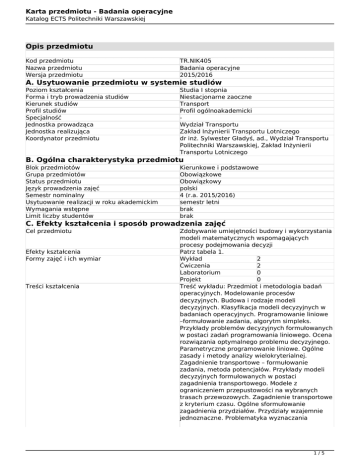 Badania operacyjne - Wydział Transportu Politechniki Warszawskiej