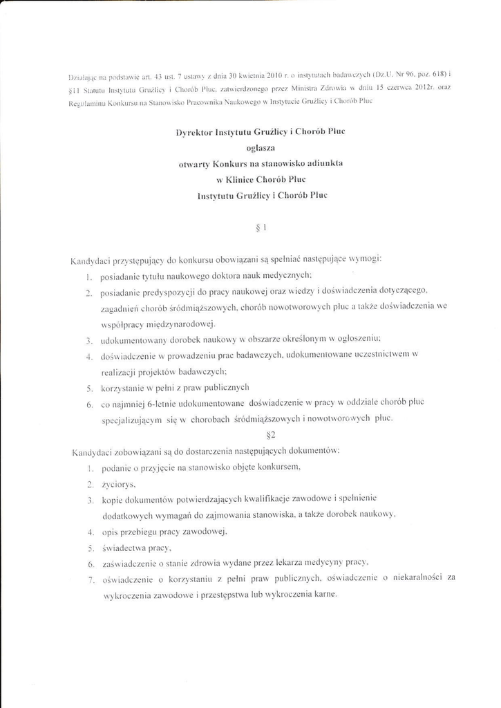 og1oszenie o |(onkuIsie zostanie podaDe do publicznej wiadomości na stronie iDtęrneroweJ lnstytutu