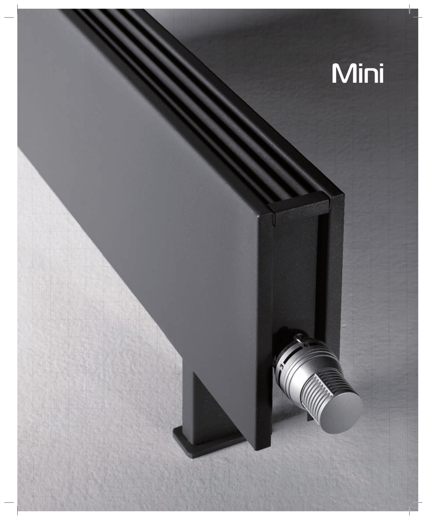 Mini 1 2 3 4 1 1. Free-standing model, colour white 2. Backwards profiled grille 3. Optional fixing set for tablet 4. Thermostatic valve is totally concealed Mini_Dimensions MINW _Mini Wall MINF_Mini Free-standing Feet: FS = feet short : 6.5 cm FM = feet medium : 10 cm FL = feet long : 12 cm AS = adjustable feet short : 13.5 > 21 cm AL = adjustable feet long : 21.5 > 34 cm height 08 6.5 6.5 d d1 3.5 1210 FS FM/FL 15 Starting with length 180, 3 feet will be delivered. 21.5 > 34 13.5>21 4.3 h1 2.5 8 68 7.5 L h D1 D Height 08_ Dimensions in cm 15 AS/AL height 13 - 23 - 28 7.5 L h D1 D Type D 09 14 19 13 18 23 D1 d d1 h* h1* 13.5 6.5 7.0 18.5 9.0 9.5 23.5 11.5 12.0 5 7 9 5 7 9 6.5 Type D 05/06 10/11 15/16 20/21 8 13 18 23 D1 d d1 h* h1* 8.5 4.0 4.5 13.5 6.5 7.0 18.5 9.0 9.5 23.5 11.5 12.0 5 7 9 11 5 7 9 11 d 3.5 FM/FL 15 d1 5 1210 FS 21.5 > 34 13.5 > 21 6.5 h1 2.5 7.5 H Height 13 - 23 - 28_ Dimensions in cm 15 AS/AL * Smaller dimensions can decrease output. Connections Jaga Comap valve to the floor 1 1 Jaga Comap valve to the wall 5 d1 7.5 5 3.3 Jaga Pro valve to the wall d1 5 3.3 3.8 2.6 1.2 Jaga Pro valve to the floor 5 2.5 2.6 5 2.5 4.7 3.8 d1 1.2 Jaga valve to the wall d1 Jaga valve to the floor 5 2.5 5 2.5 3 d1 5 5 5 5 5 3.5 6.0 d1 5.0 The valves offered by Jaga are totally concealed within the standard casing. Other valves may be partially visible. Detailed info: see Connection sets and valves. DBE Bench mounting set 10 DBE: the smallest and most powerful radiator. See price list “Top performers”. 69 CODE For type standard colour 5210.00005/xxx 5210.00010/xxx 5210.00015/xxx 5210.00020/xxx 05/06 09/10/11 14/15/16 19/20/21 other 5210.00005/xxx 5210.00010/xxx 5210.00015/xxx 5210.00020/xxx 05/06 09/10/11 14/15/16 19/20/21 Mini 1 set fill in colour code Number of sets for length casing: - from 060 to 160 cm: min. 2 sets - from 180 to 300 cm: min. 3 sets Bench not supplied. . Brush For easy cleaning of the underside of the Low-H2O heat exchanger without detaching the casing. CODE 5090.001 F S . . Output measured in accordance with EN442, at a water temperature of 75/65°C and a room temperature of 20°C (ΔT=50). Mini_Wall mounted model T 09 T 14 Standard delivery T 19 L H 70 - colour 101, 133 or 001 - Low-H2O heat exchanger with other end connection, flow reversible L/R - casing with wall fixings in the same colour - chrome-plated air vent 1/8” - drain cock 1/2” Wall mounted model _height 8 H T 008 09 code height length type colour ORDERING CODE: MINW. 008 060 09. xxx L 060 070 080 090 100 110 120 140 160 180 200 220 240 260 280 300 255 330 298 386 340 440 383 496 425 550 468 606 510 660 595 771 680 881 765 991 850 1101 935 1211 1020 1321 1105 1431 1190 1541 1275 1651 75/65/20 90/70/20 s o 14 75/65/20 90/70/20 st ot 416 539 486 629 555 719 625 809 694 899 763 988 833 1079 972 1259 1110 1437 1249 1617 1388 1797 1527 1978 1666 2158 1804 2336 1943 2516 2082 2696 19 75/65/20 90/70/20 572 741 667 864 762 987 858 1111 953 1234 1048 1357 1144 1482 1334 1728 1525 1975 1715 2221 1906 2468 2097 2716 2287 2962 2478 3209 2668 3455 2859 3702 code height length type colour ORDERING CODE: MINW. 013 060 05. xxx s ot T 05 T 10 T 15 Standard delivery T 20 L H - colour 101, 133 or 001 - Low-H2O heat exchanger - casing with wall fixings in the same colour - chrome-plated air vent 1/8” - drain cock 1/2” Wall mounted model _height 13 H T 013 05 10 L 060 070 080 090 100 110 120 140 160 180 200 220 240 260 280 300 75/65/20 90/70/20 s90 ot 197 255 230 298 263 340 296 383 329 426 362 468 395 511 461 596 526 681 592 766 658 851 724 937 790 1022 855 1106 921 1192 987 1277 75/65/20 90/70/20 303 392 354 459 404 523 455 589 505 654 556 720 606 785 707 916 808 1047 909 1177 1010 1308 1111 1439 1212 1570 1313 1701 1414 1832 1515 1962 s ot 15 75/65/20 90/70/20 s0 ot 508 658 593 768 678 878 762 986 847 1096 932 1207 1016 1315 1186 1535 1355 1754 1525 1974 1694 2193 1863 2412 2033 2632 2202 2851 2372 3071 2541 3289 20 75/65/20 90/70/20 st ot 717 928 837 1084 956 1238 1076 1393 1195 1547 1315 1702 1434 1856 1673 2166 1912 2475 2151 2785 2390 3094 2629 3403 2868 3713 3107 4022 3346 4332 3585 4641 Mini_Wall mounted model T 06 T 11 T 16 Standard delivery T 21 L H - colour 101, 133 or 001 - Twin Low-H2O heat exchanger - casing with wall fixings in the same colour - chrome-plated air vent 1/8” - drain cock 1/2” Wall mounted model Twin_height 23 H T 023 06 code height length type colour ORDERING CODE: MINW. 023 060 06. xxx L 060 070 080 090 100 110 120 140 160 180 200 220 240 260 280 300 323 418 377 488 431 557 485 627 539 697 593 767 647 837 755 976 862 1115 970 1255 1078 1394 1186 1534 1294 1674 1401 1812 1509 1952 1617 2091 601 782 701 912 802 1043 902 1173 1002 1303 1102 1433 1202 1563 1403 1825 1603 2085 1804 2346 2004 2606 2204 2866 2405 3128 2605 3388 2806 3649 3006 3909 785 1023 916 1194 1046 1363 1177 1534 1308 1705 1439 1875 1570 2046 1831 2386 2093 2728 2354 3068 2616 3409 2878 3751 3139 4091 3401 4433 3662 4773 3924 5114 1021 1333 1191 1555 1361 1777 1531 1999 1701 2221 1871 2443 2041 2665 2381 3109 2722 3554 3062 3998 3402 4442 3742 4886 4082 5330 4423 5775 4763 6219 5103 6663 code height length type colour ORDERING CODE: MINW. 028 060 06. xxx 75/65/20 90/70/20 s o 11 75/65/20 90/70/20 s o 16 75/65/20 90/70/20 s ot 21 T 06 75/65/20 90/70/20 st o T 11 T 16 Standard delivery T 21 L H - colour 101, 133 or 001 - Twin Low-H2O heat exchanger - casing with wall fixings in the same colour - chrome-plated air vent 1/8” - drain cock 1/2” Wall mounted model Twin_height 28 H T L 060 070 080 090 100 110 120 140 160 180 200 220 240 260 280 300 028 06 75/65/20 90/70/20 st ot 342 442 399 515 456 589 513 663 570 736 627 810 684 883 798 1031 912 1178 1026 1325 1140 1472 1254 1620 1368 1767 1482 1914 1596 2061 1710 2208 11 75/65/20 90/70/20 st oth 653 849 762 991 871 1133 980 1274 1089 1416 1198 1558 1307 1700 1525 1983 1742 2265 1960 2549 2178 2832 2396 3116 2614 3399 2831 3682 3049 3965 3267 4249 16 75/65/20 90/70/20