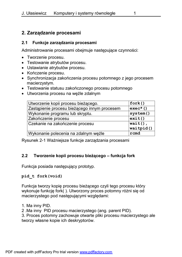 Program 2-1 Podstawowy schemat wykorzystania funkcji fork